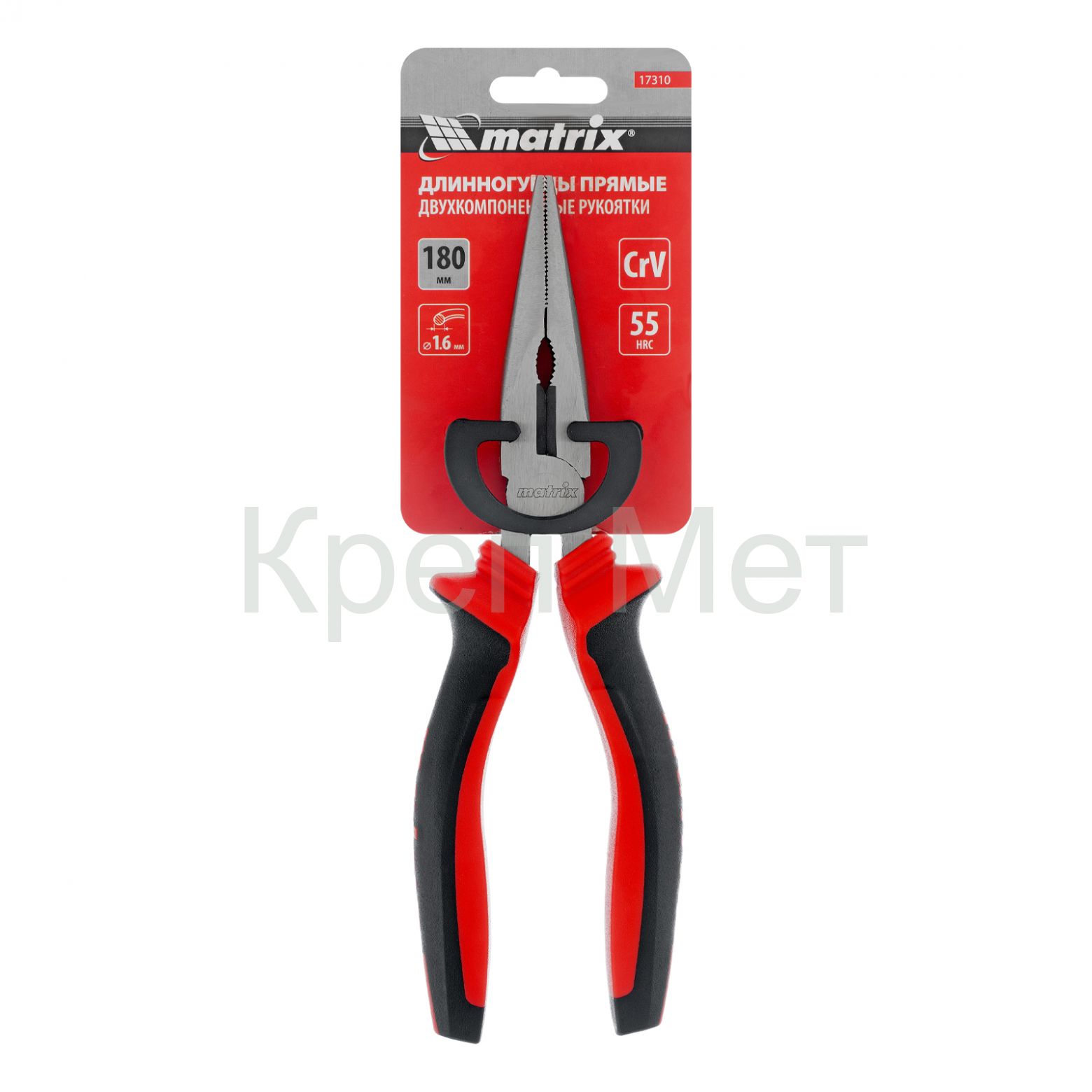 - Длинногубцы прямые, 180 мм, хром-ванадий, двухкомпонентные рукоятки Matrix
