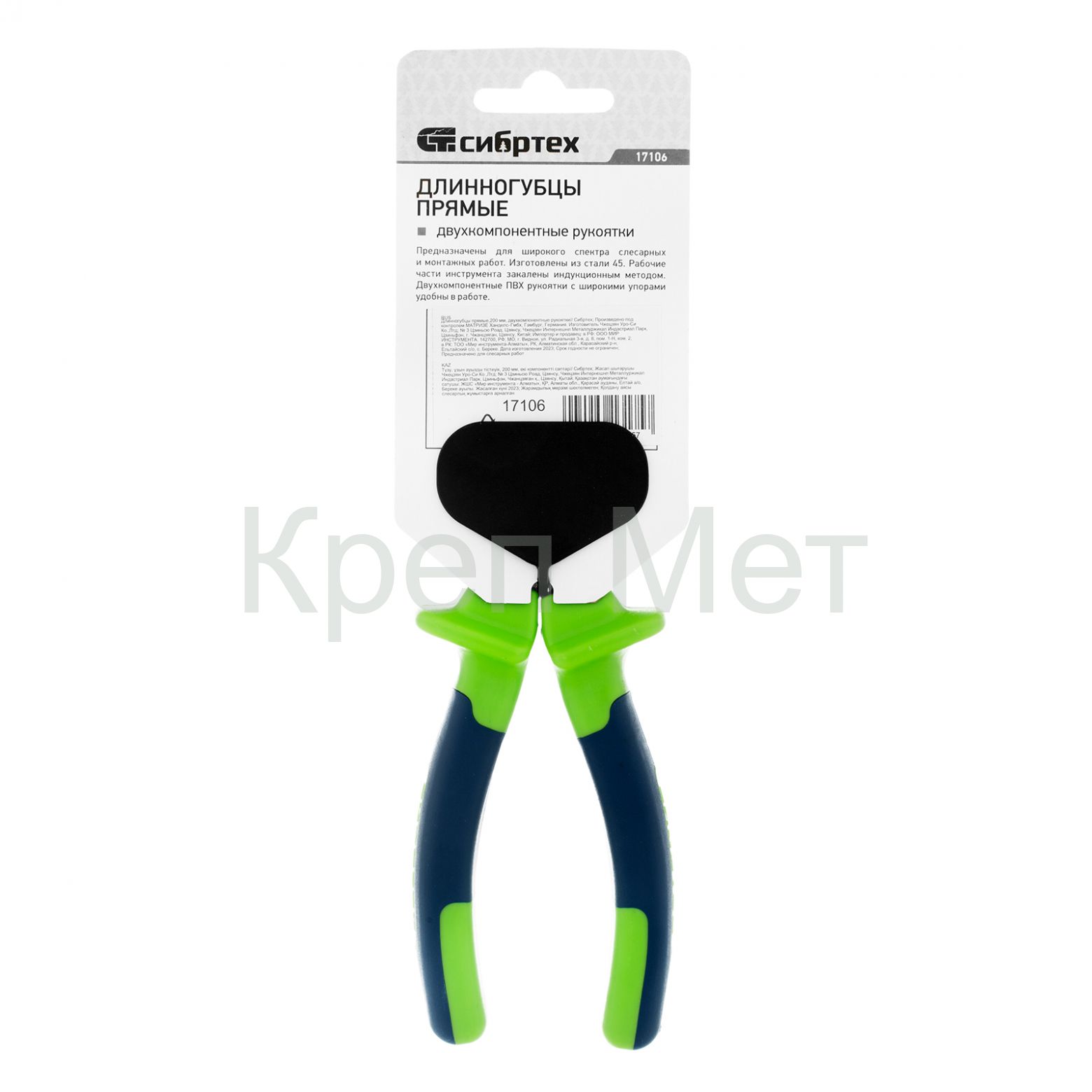 - Длинногубцы прямые, 200 мм, двухкомпонентные рукоятки Сибртех
