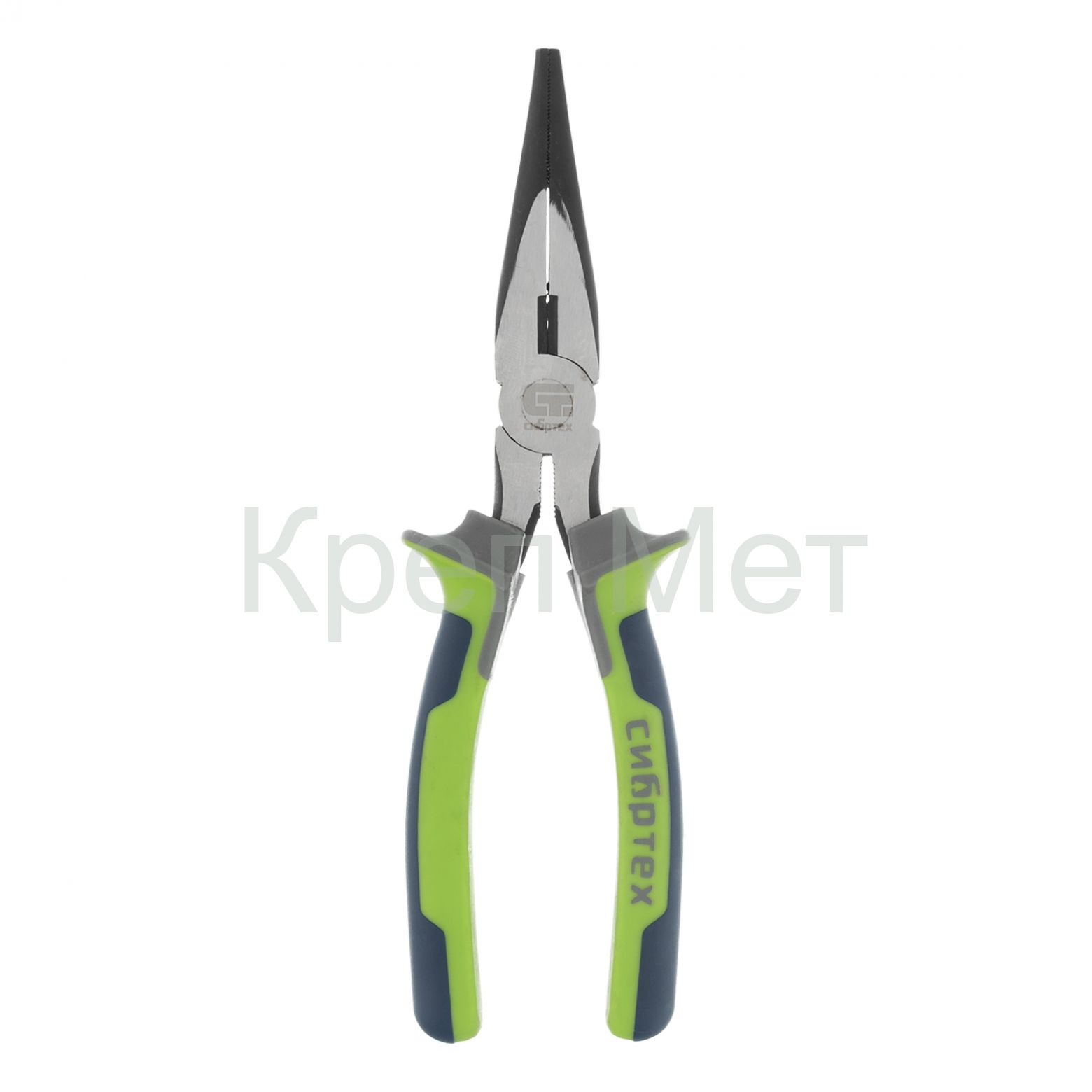 Длинногубцы прямые 200 мм, фосфатирование, трехкомпонентные рукоятки Сибртех