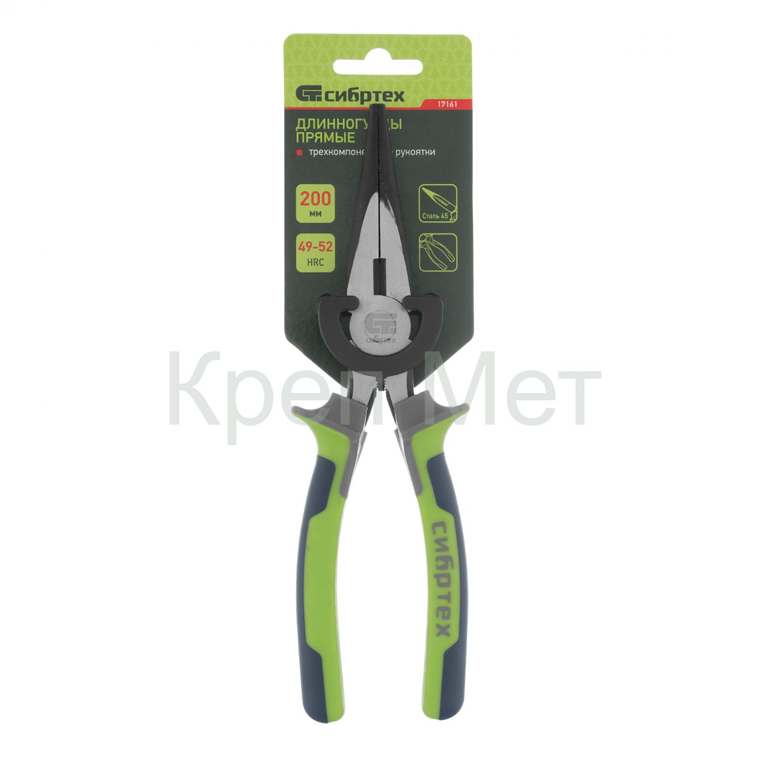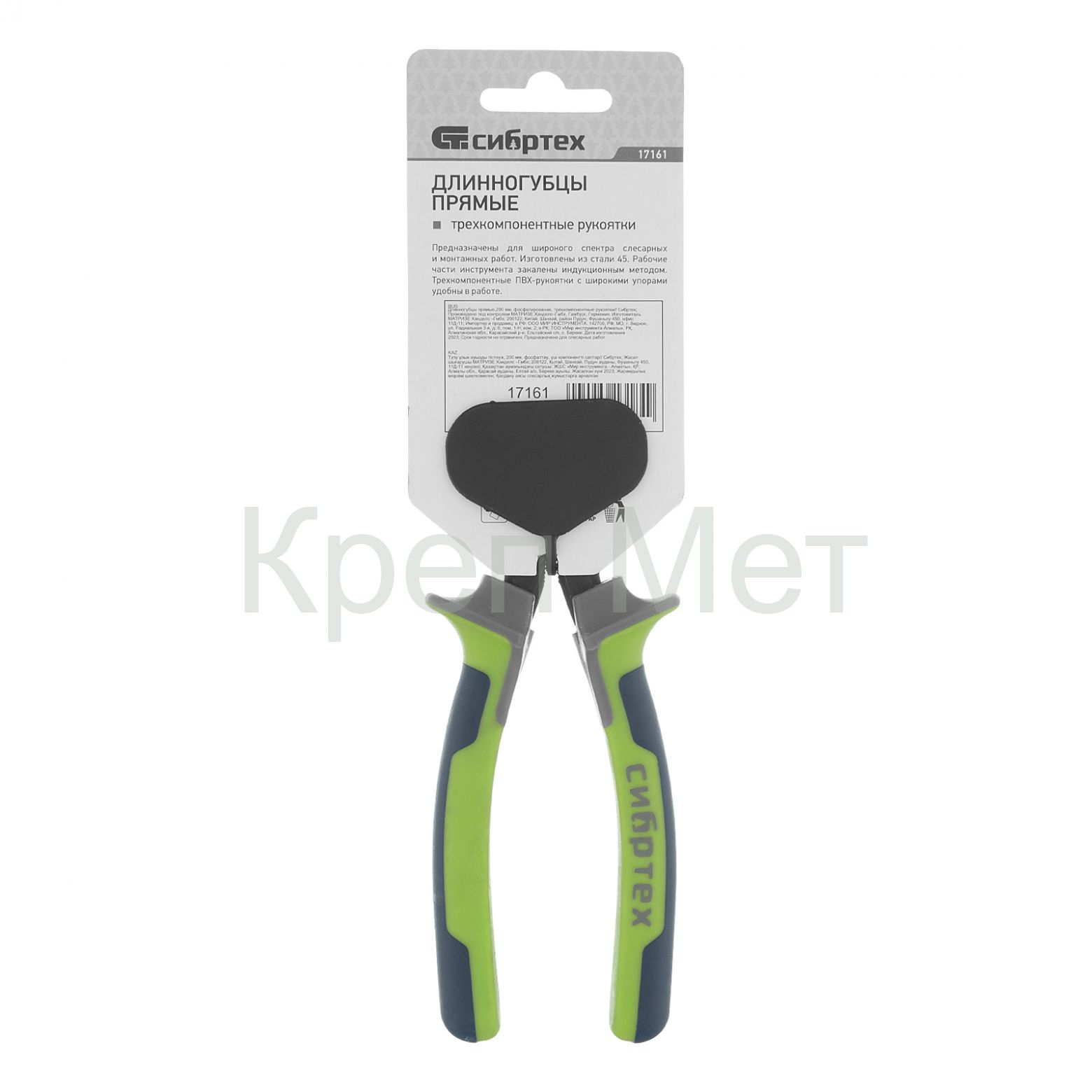 - Длинногубцы прямые 200 мм, фосфатирование, трехкомпонентные рукоятки Сибртех