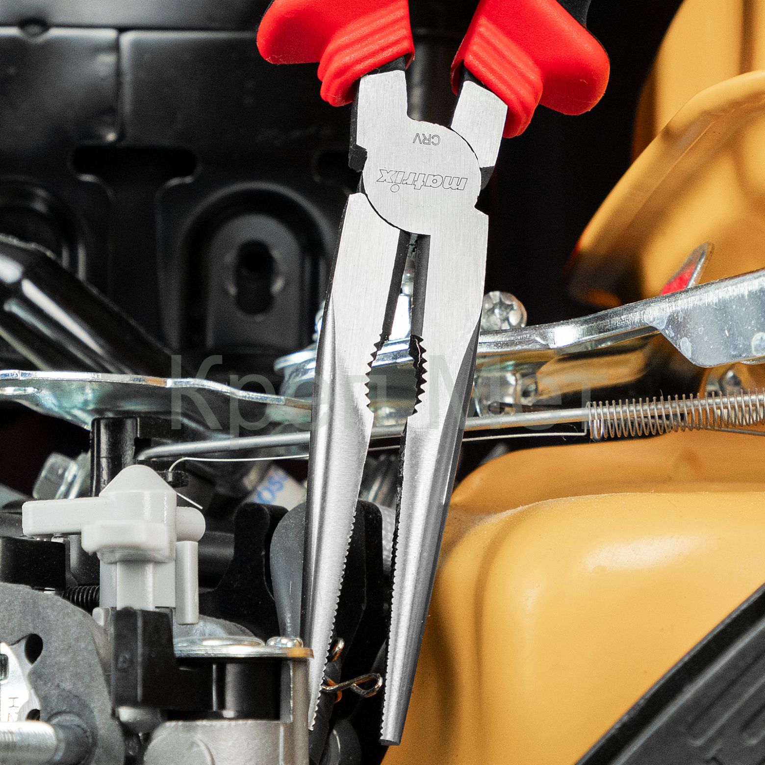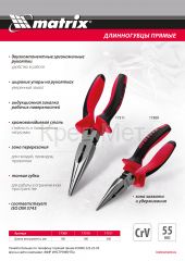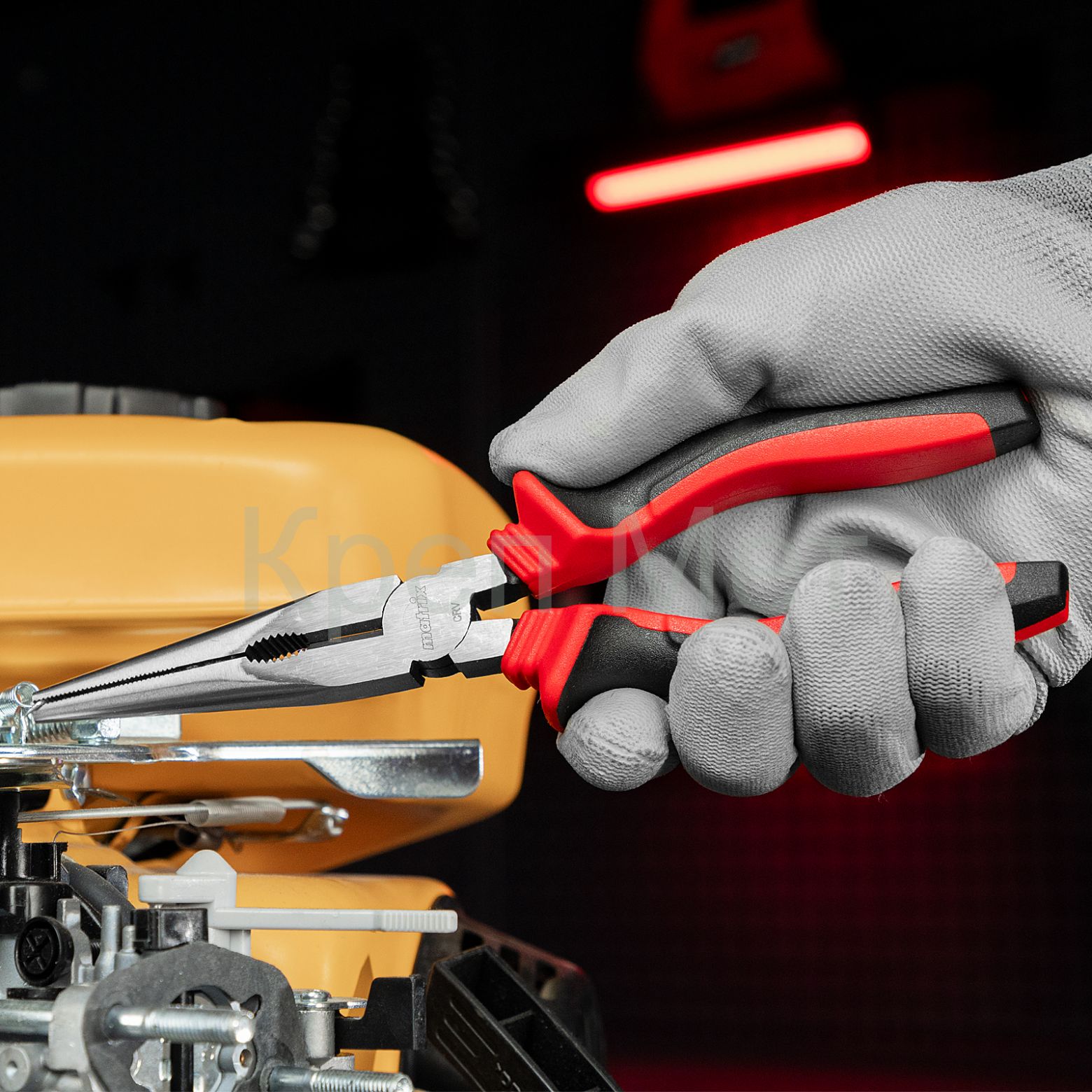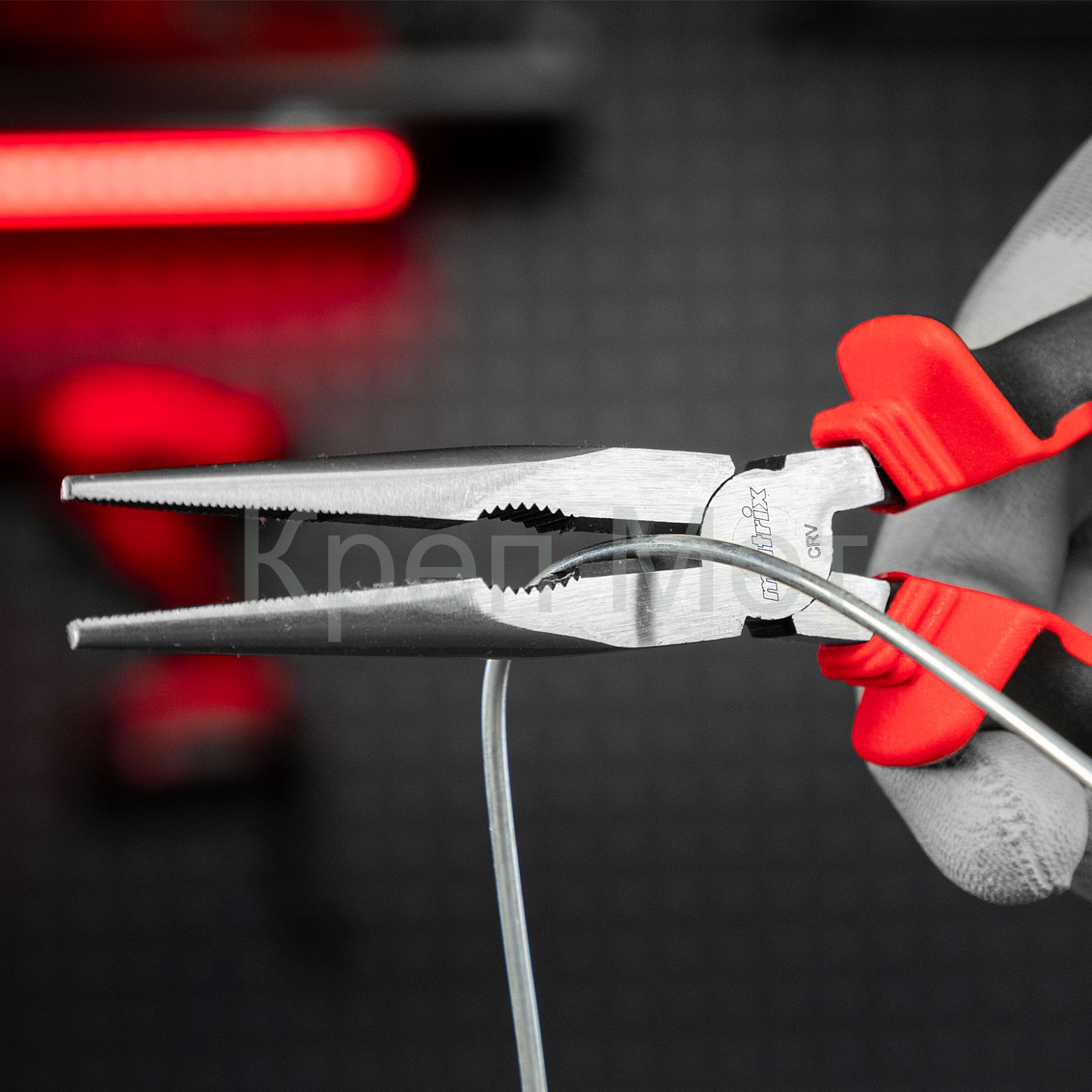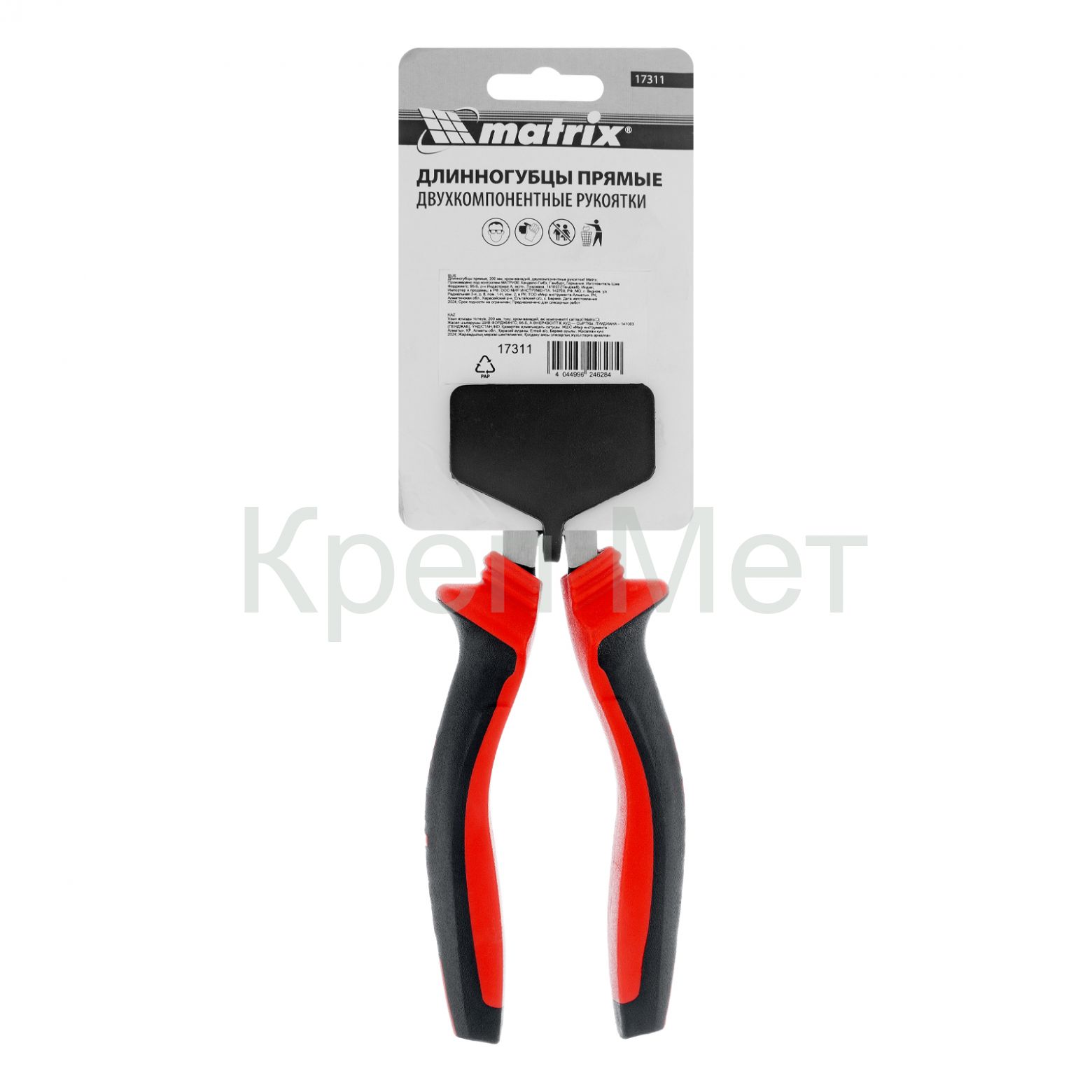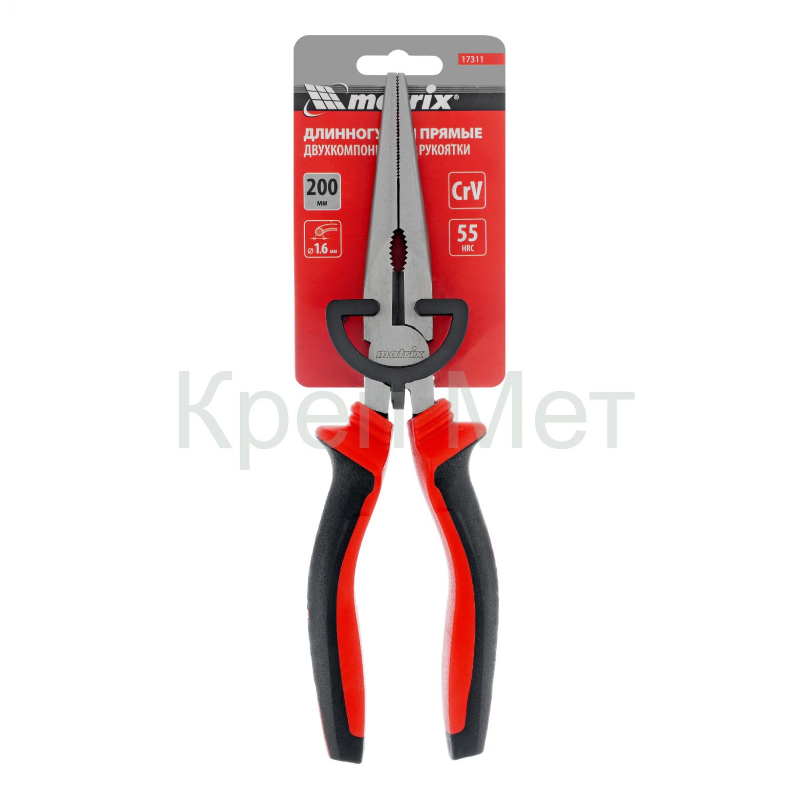 - Длинногубцы прямые, 200 мм, хром-ванадий, двухкомпонентные рукоятки Matrix