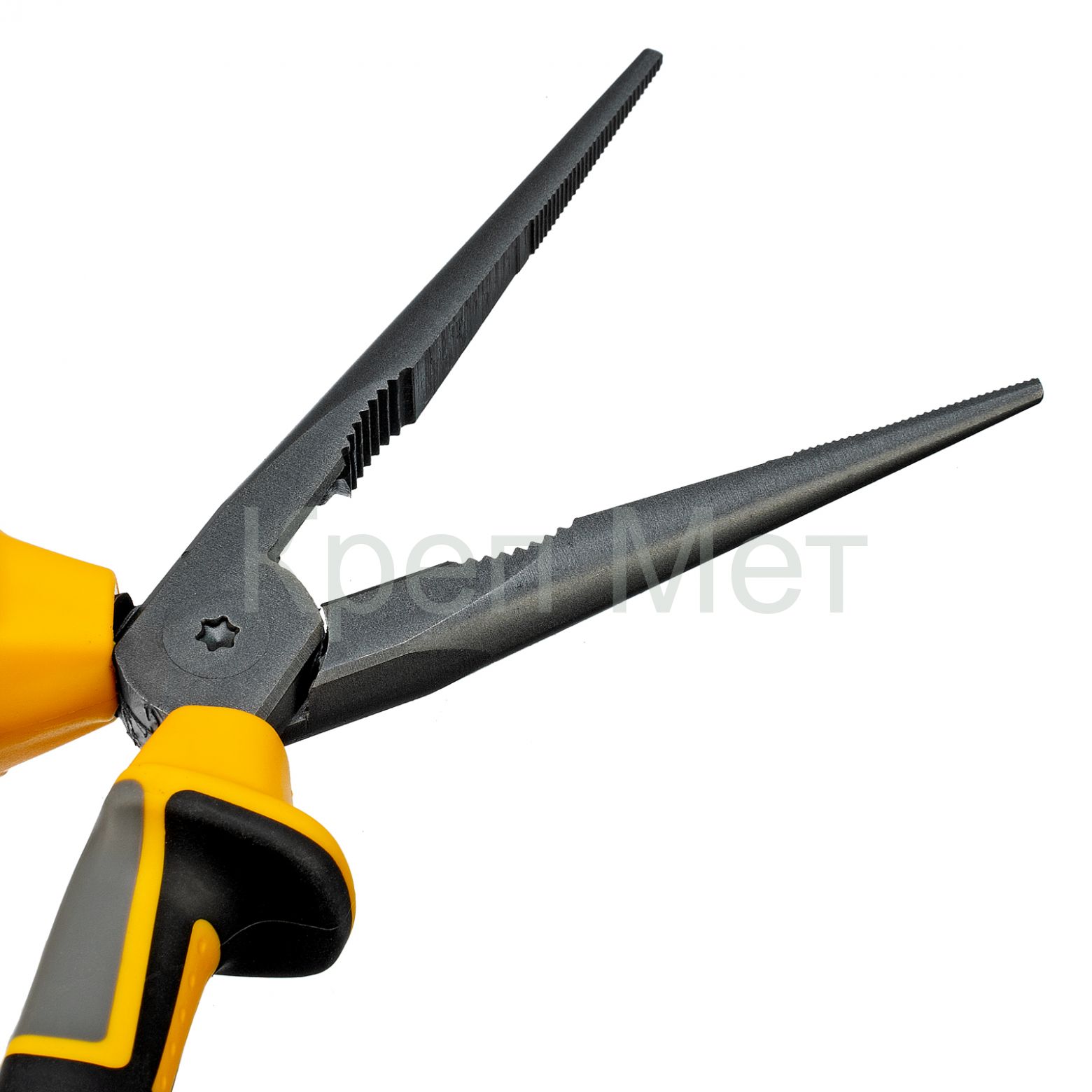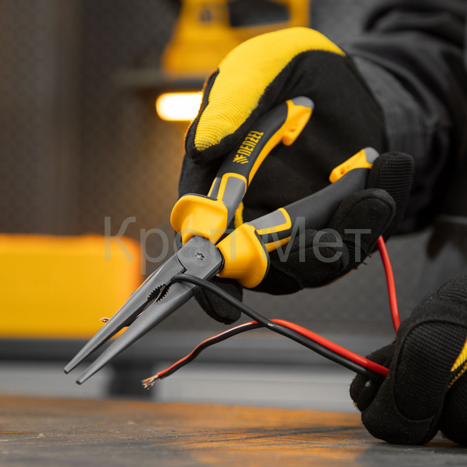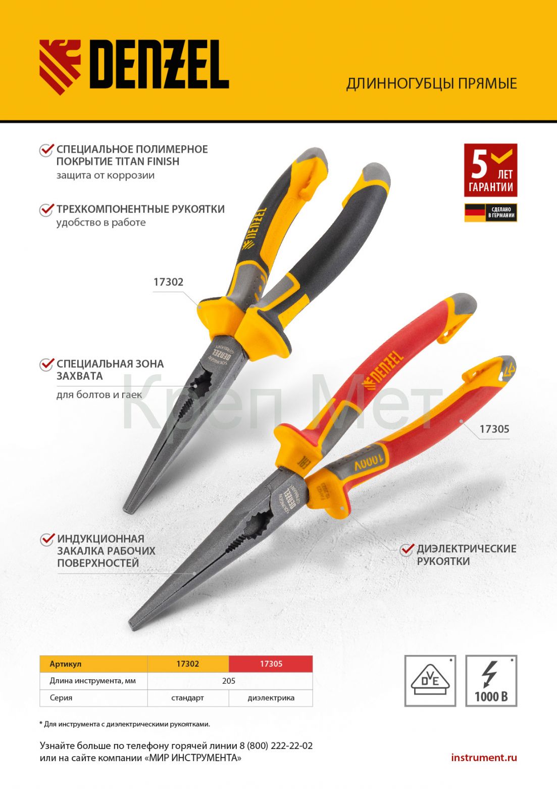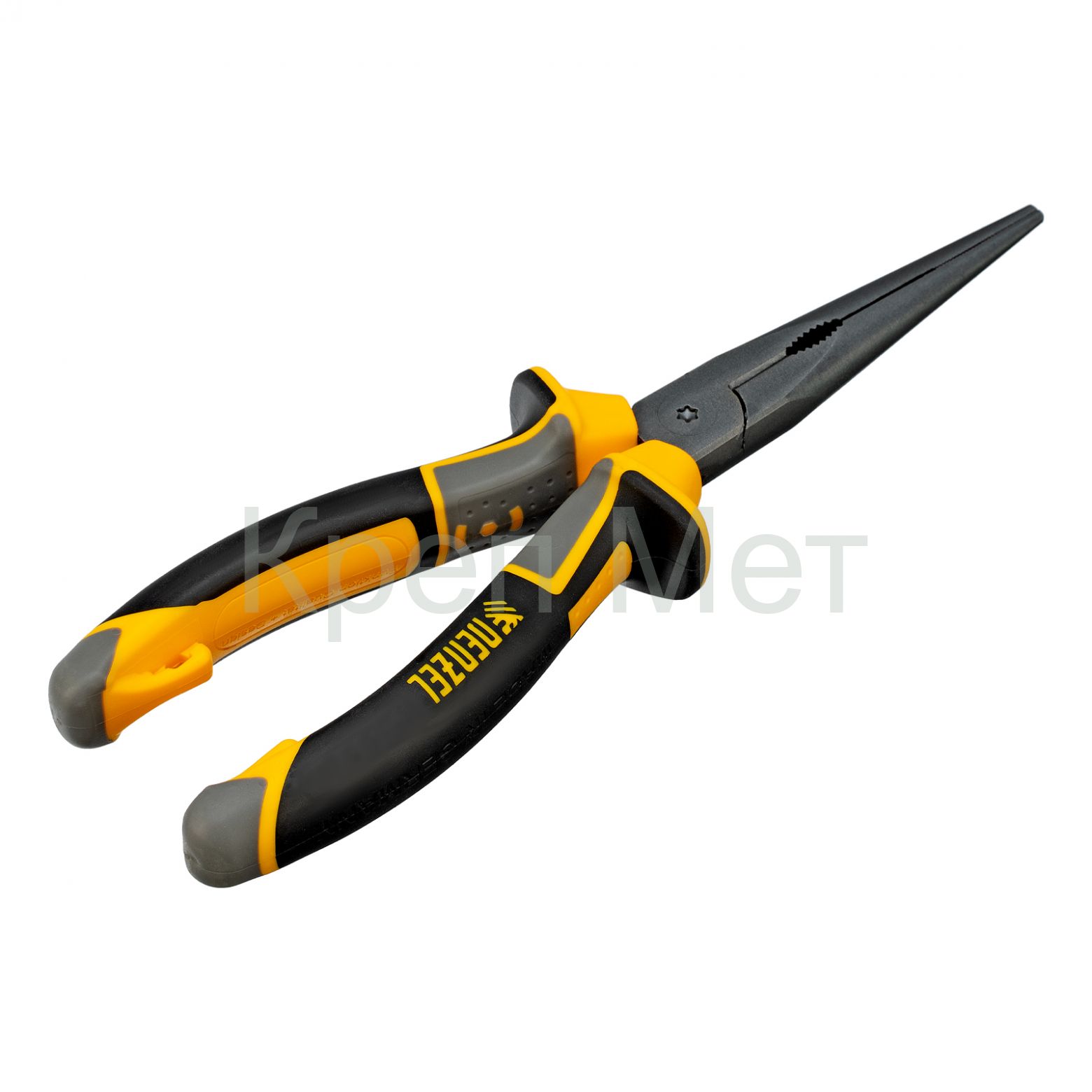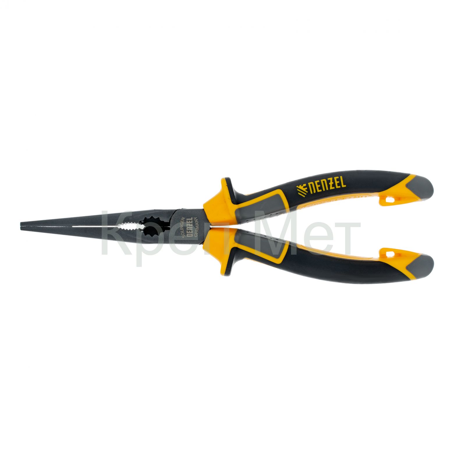- Длинногубцы прямые 205 мм, трехкомпонентные рукоятки Denzel