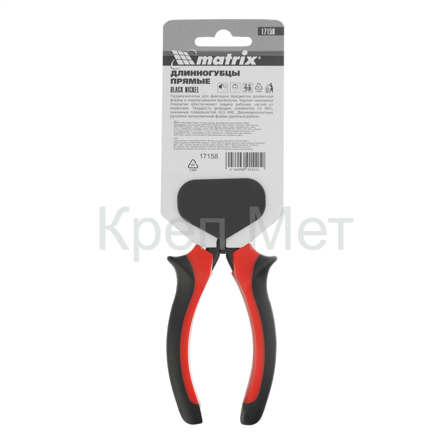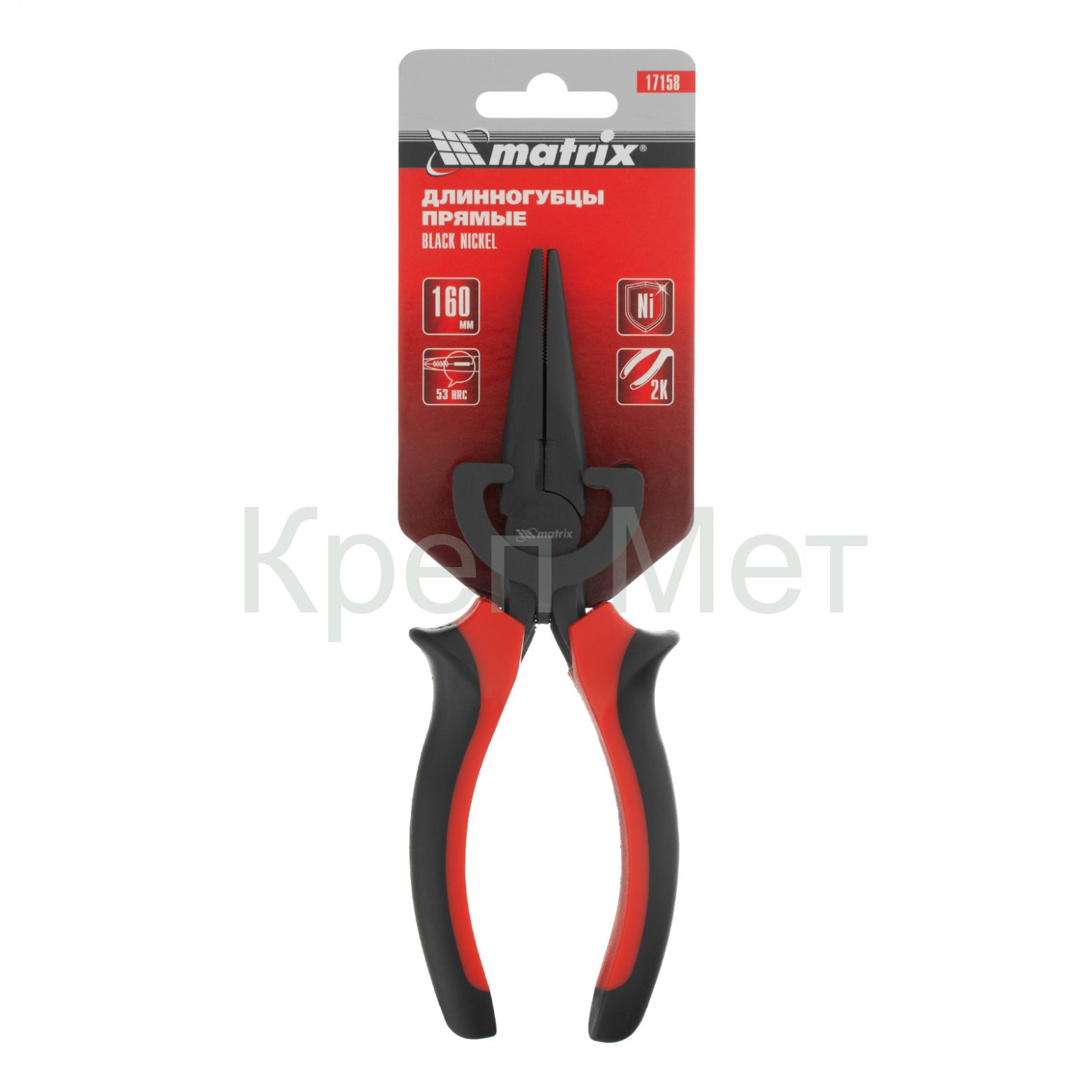 - Длинногубцы прямые Black Nickel, 160 мм, двухкомпонентные рукоятки Matrix