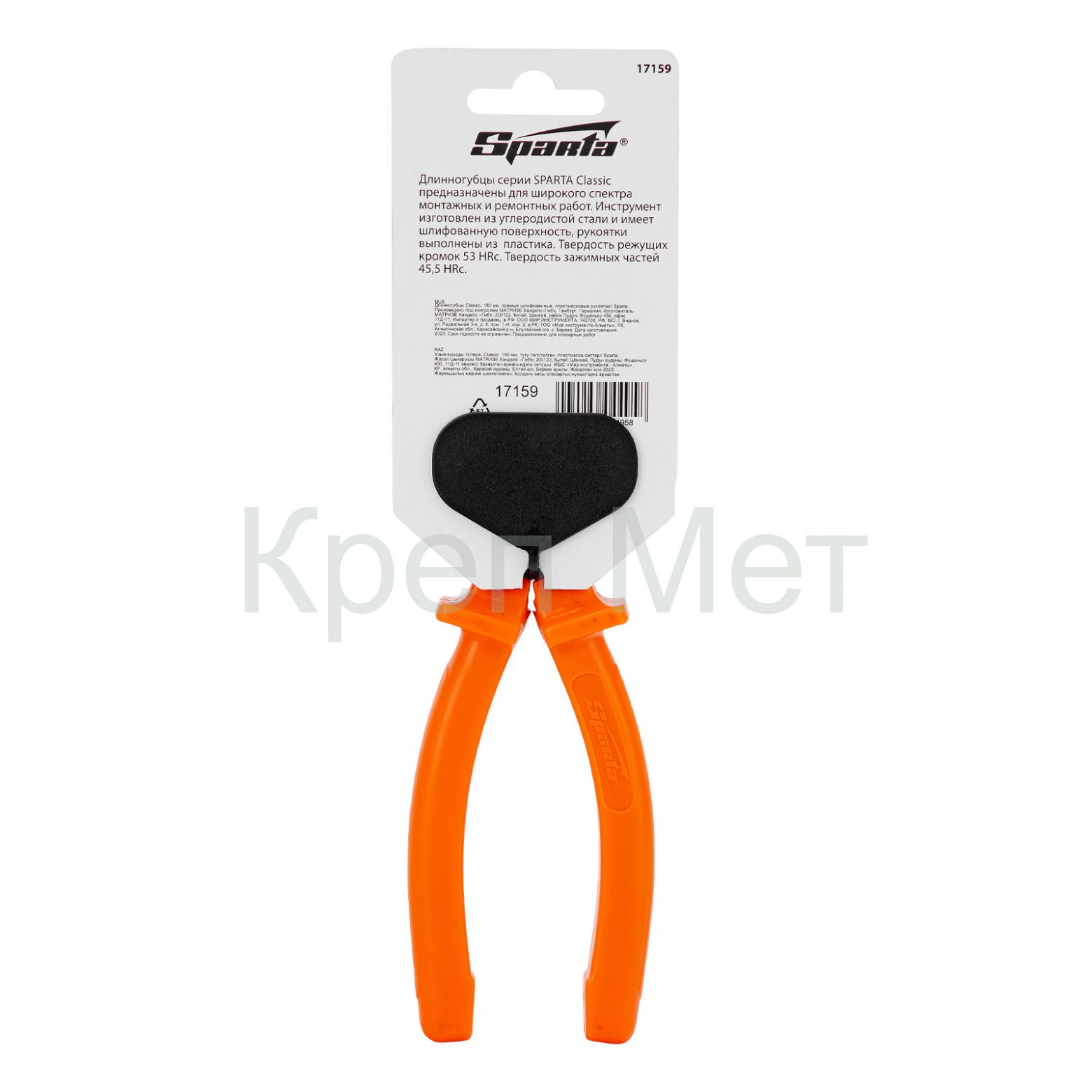 - Длинногубцы прямые Classic, 180 мм, шлифованные, пластмассовые рукоятки Sparta