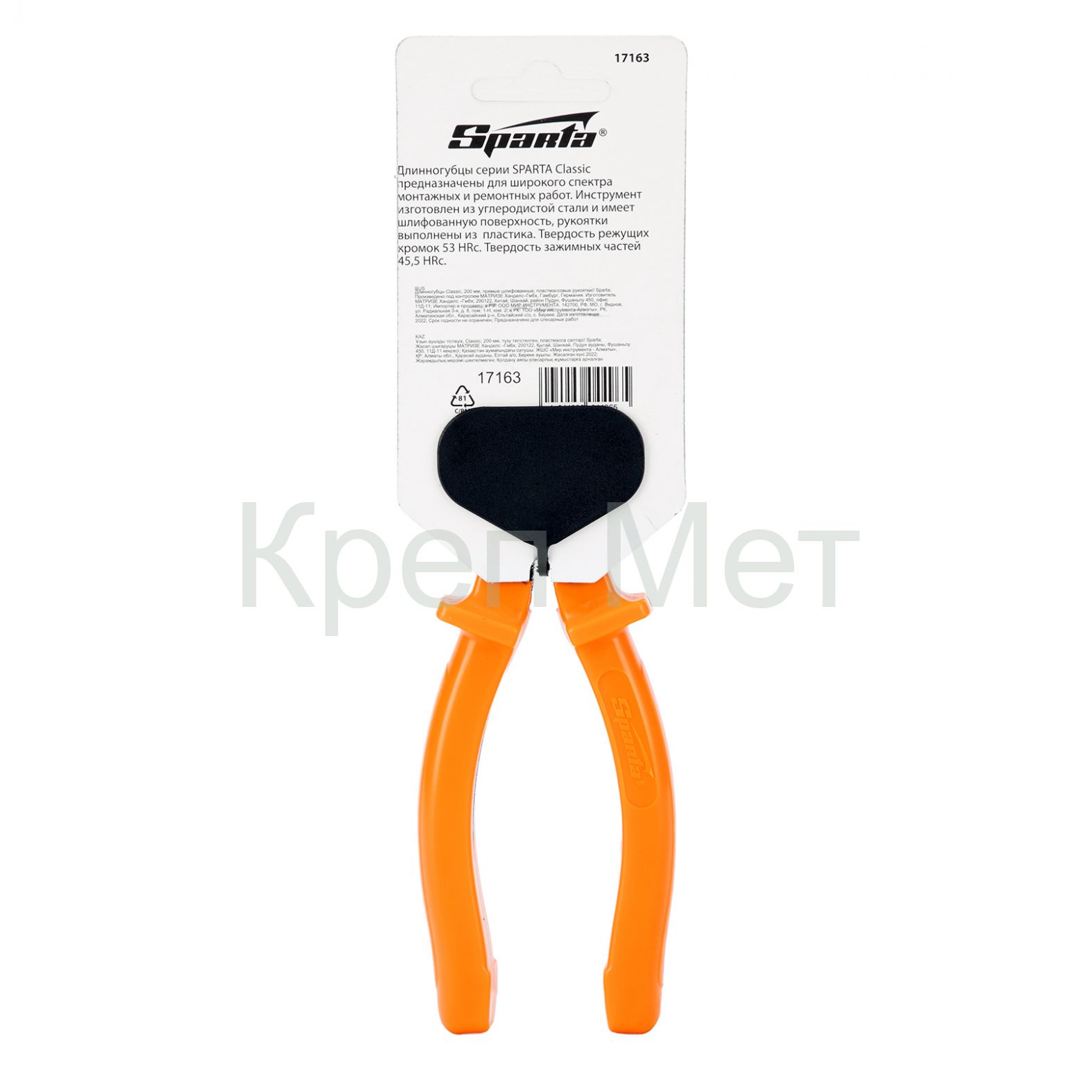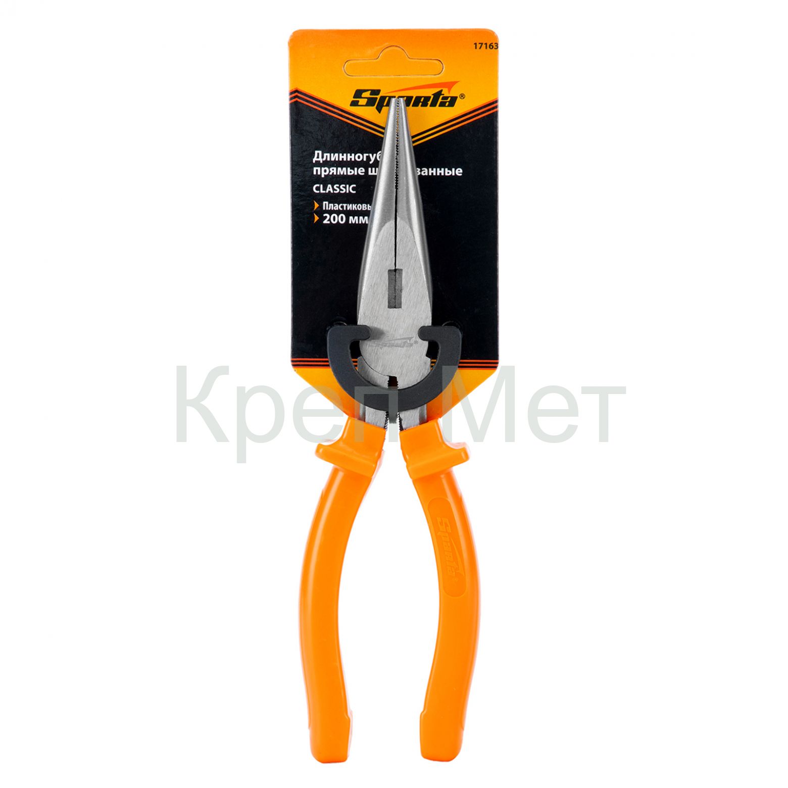 Длинногубцы прямые Classic, 200 мм, шлифованные, пластмассовые рукоятки Sparta