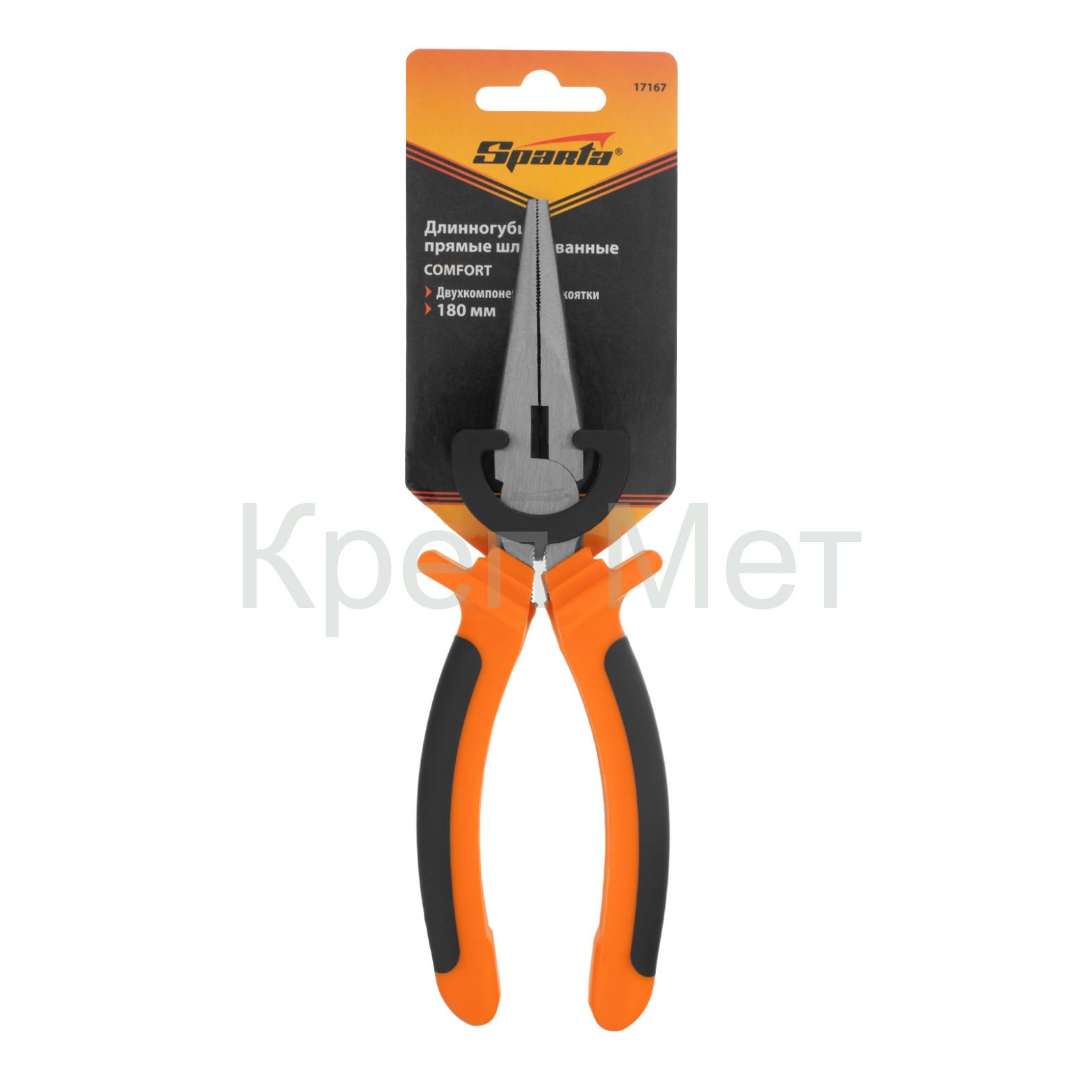 - Длинногубцы прямые Comfort, 180 мм, шлифованные, двухкомпонентные рукоятки Sparta