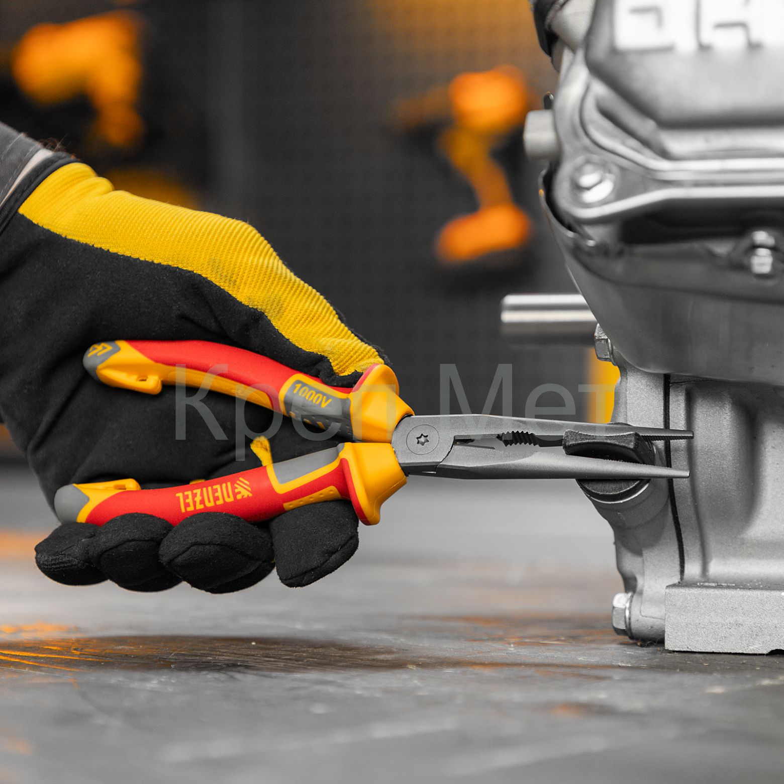 Длинногубцы прямые, диэлектрические рукоятки до 1000 В, трехкомпонентные рукоятки, 205мм Denzel