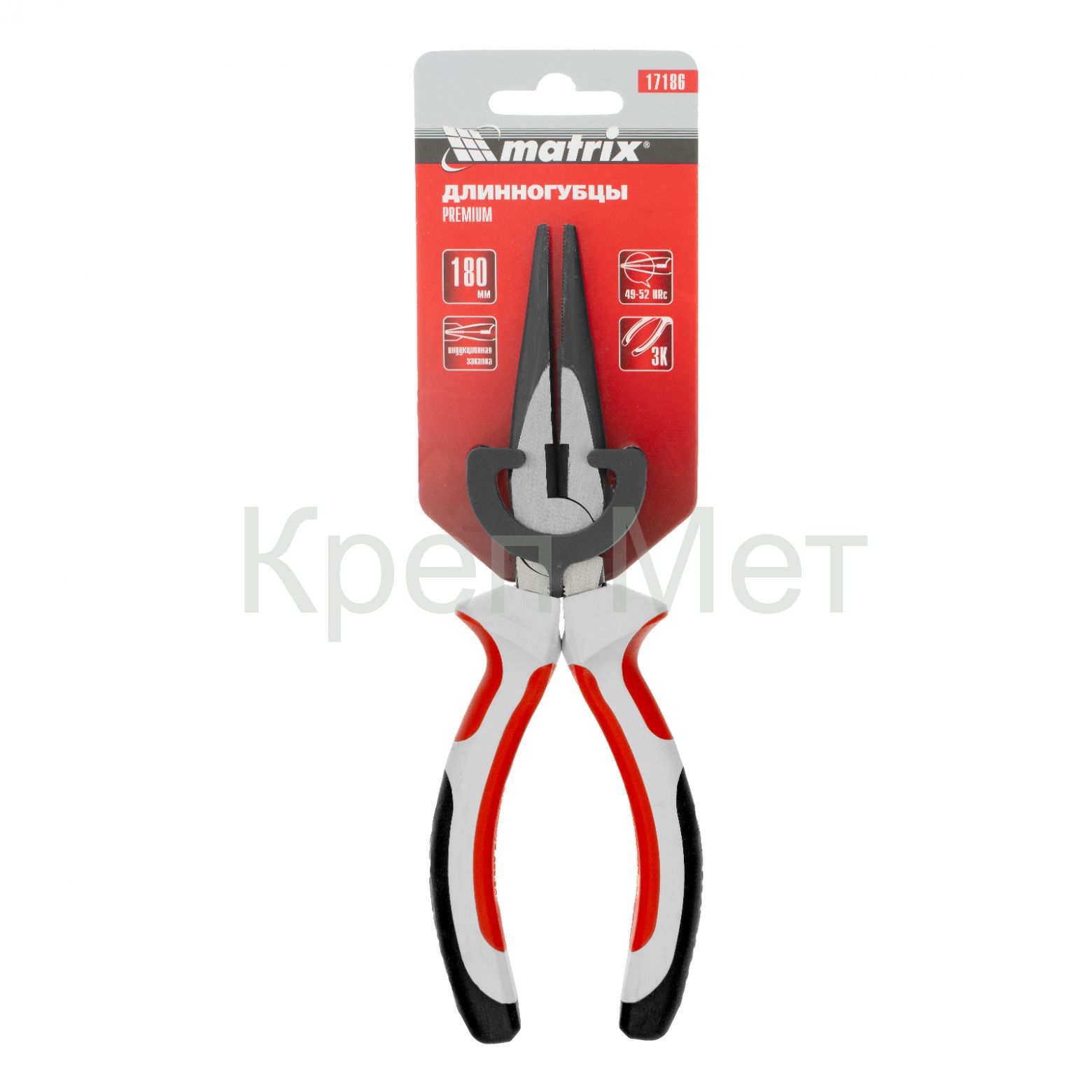Длинногубцы прямые Premium, 180 мм, трехкомпонентные рукоятки Matrix
