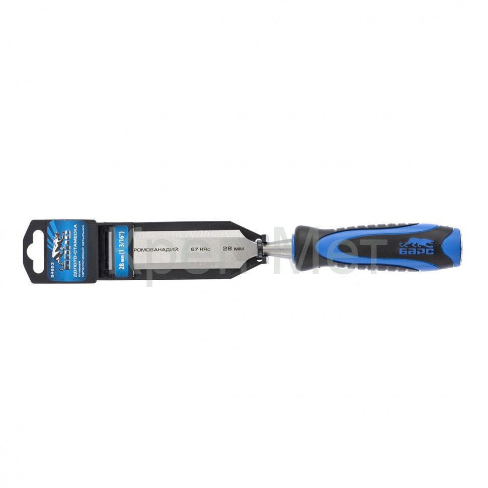 - Долото-стамеска, плоская, 28 мм, двухкомпонентная рукоятка, металлический затыльник Барс