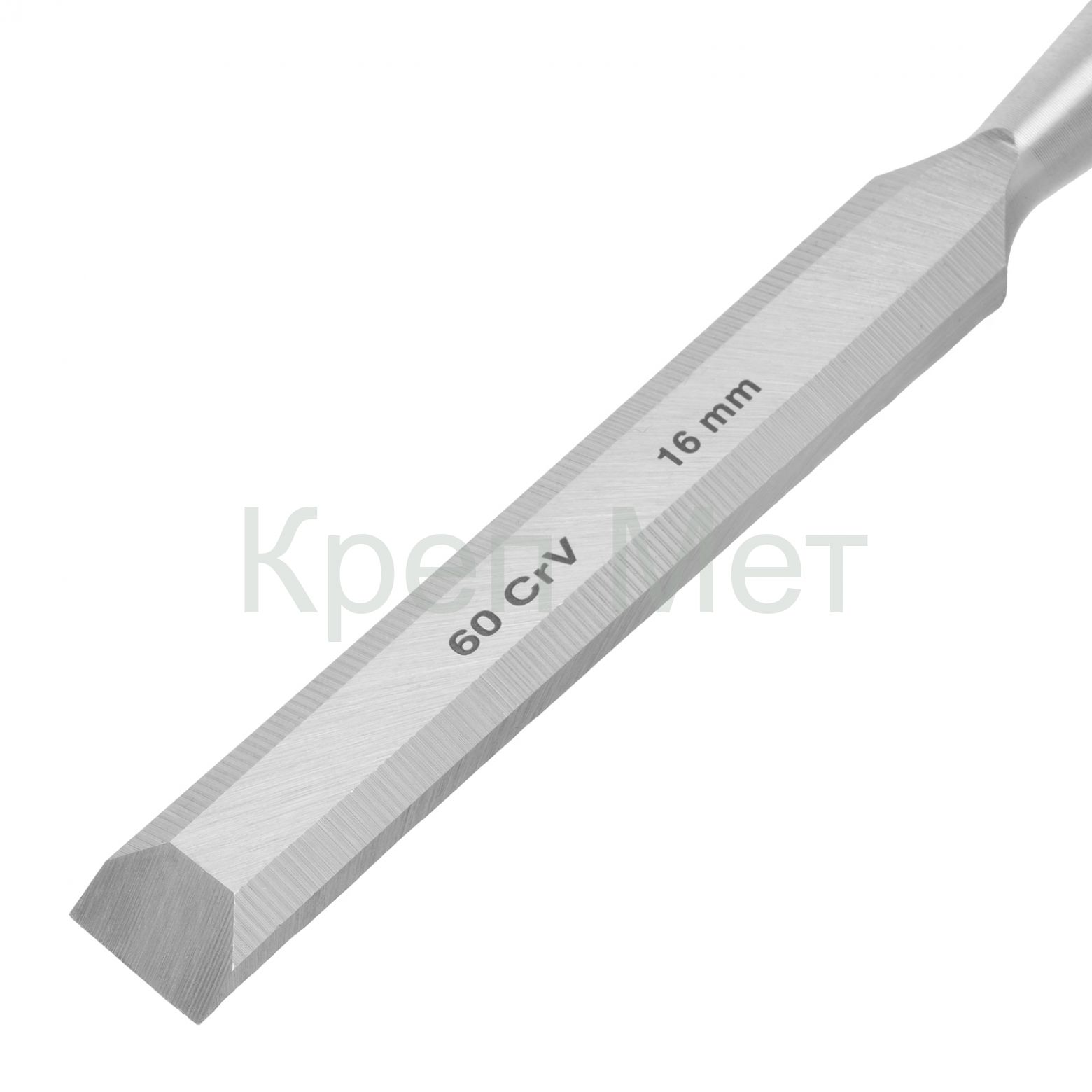 - Длительное сохранение режущих свойств — долото-стамеска обладает твердостью 65 HRC (0,7 длины рабочей части полотна), острое, как бритва, лезвие обработано на заводе под углом 20-35°, повторная заточка потребуется минимум через 6 месяцев.