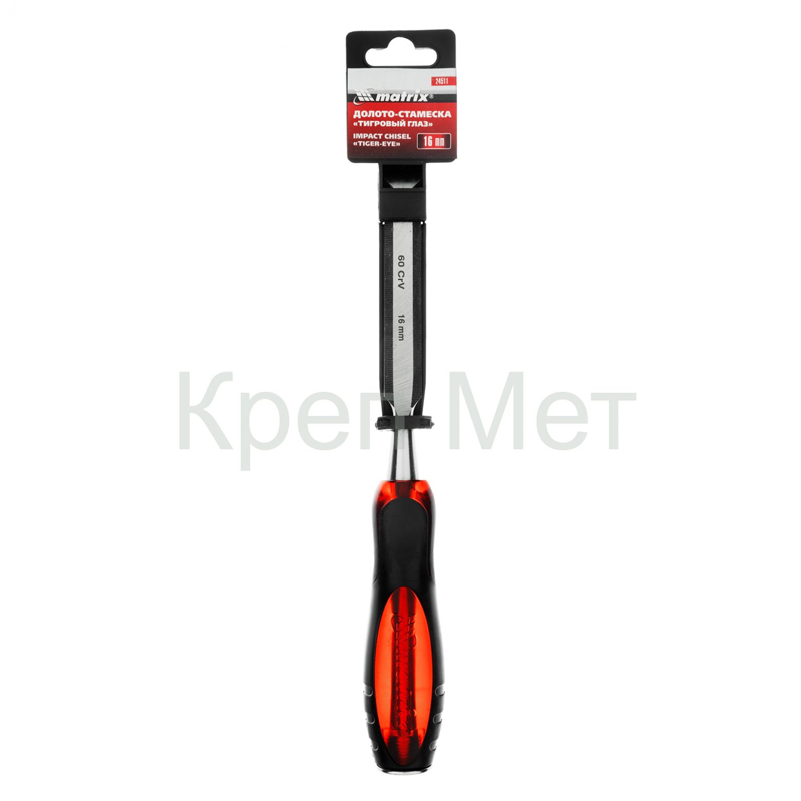 Долото-стамеска Matrix «Тигровый глаз» 24511 с полотном шириной 16 мм и двухкомпонентной обрезиненной рукояткой используется в столярном и плотницком деле, в производстве мебели. Позволяет вырезать углубления, формировать пазы, зачищать шипы и гнезда, снимать фаски. Инструмент выдерживает удары киянкой или молотком, т. к. металлический затыльник защищает его от деформации. Долото относится к профессиональному ручному инструменту, но может применяться и в домашних условиях.