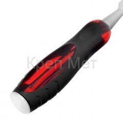 - Комфортная эксплуатация — двухкомпонентная рукоятка с резиновыми вставками и упорами под пальцы не скользит в руке и снижает усталость во время работы.