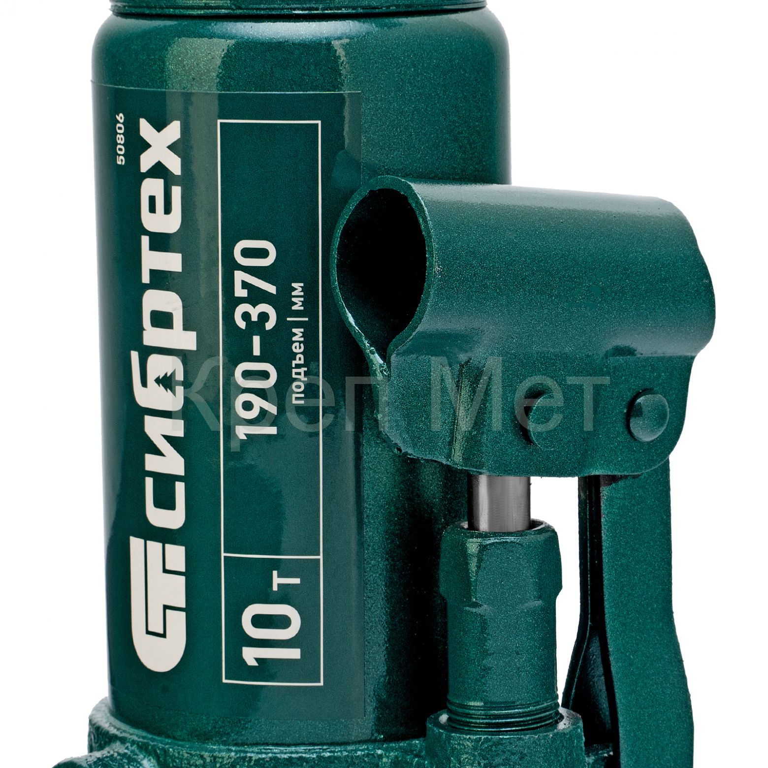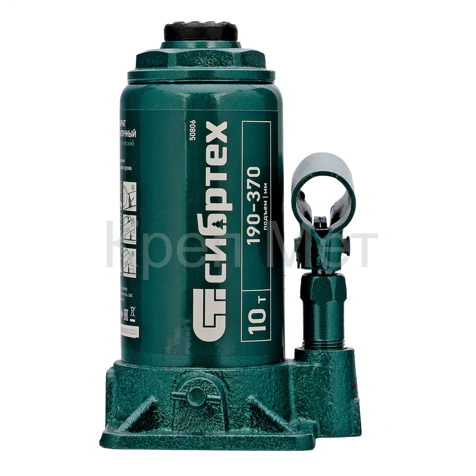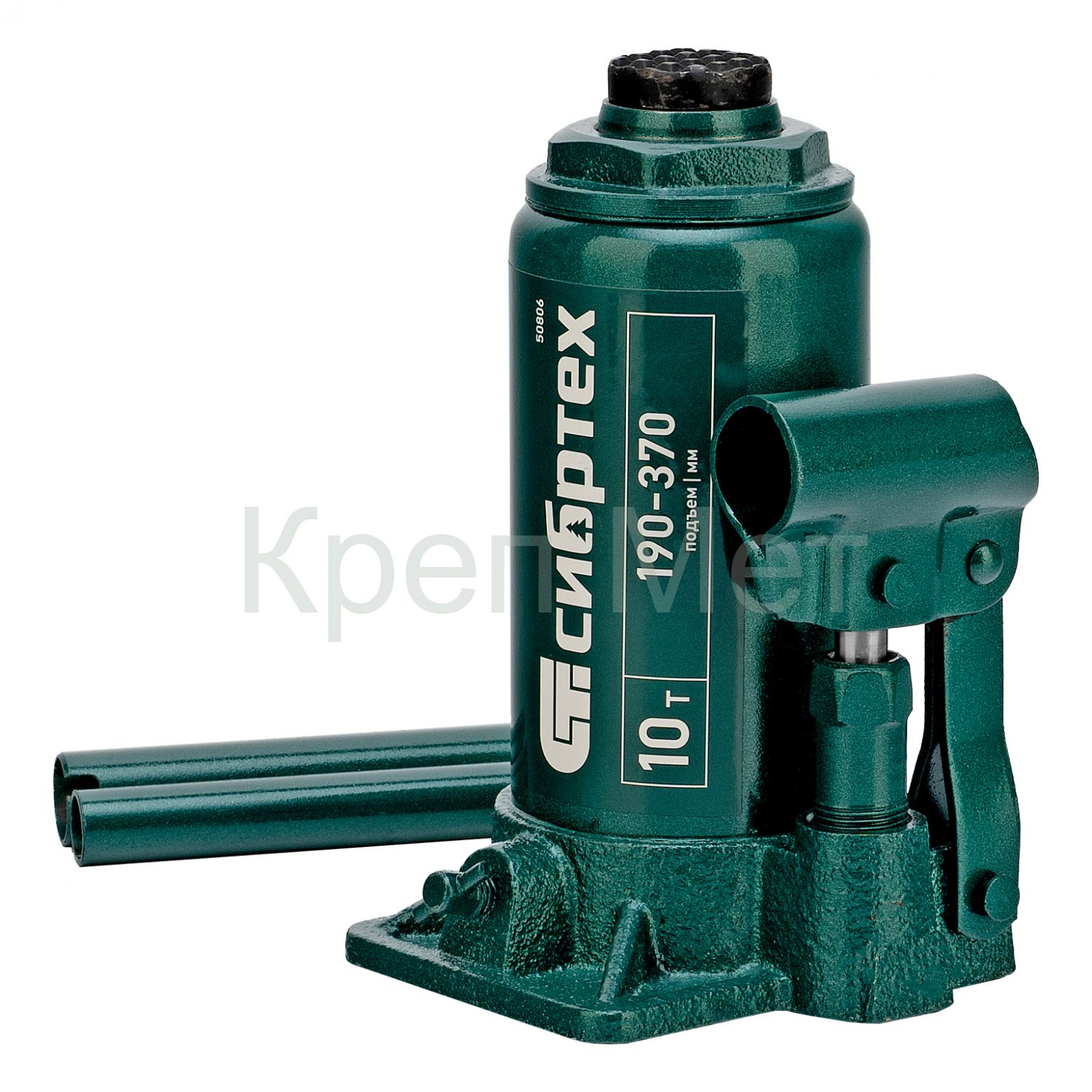 - Домкрат гидравлический бутылочный, 10 т, 190-370 мм Сибртех