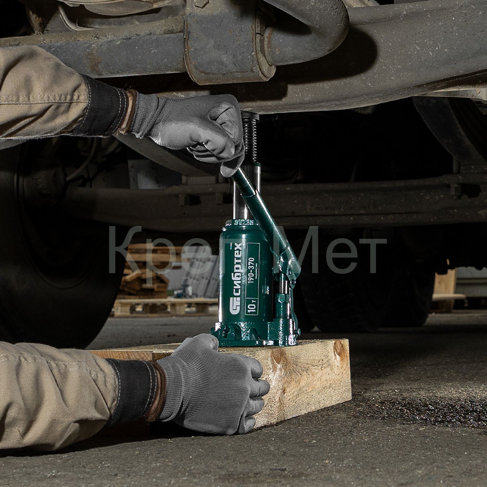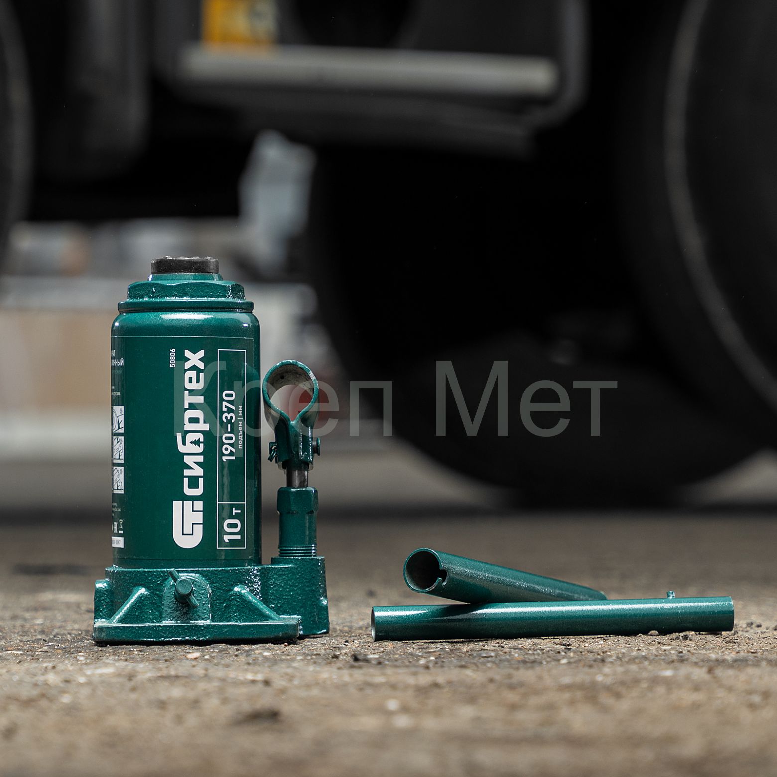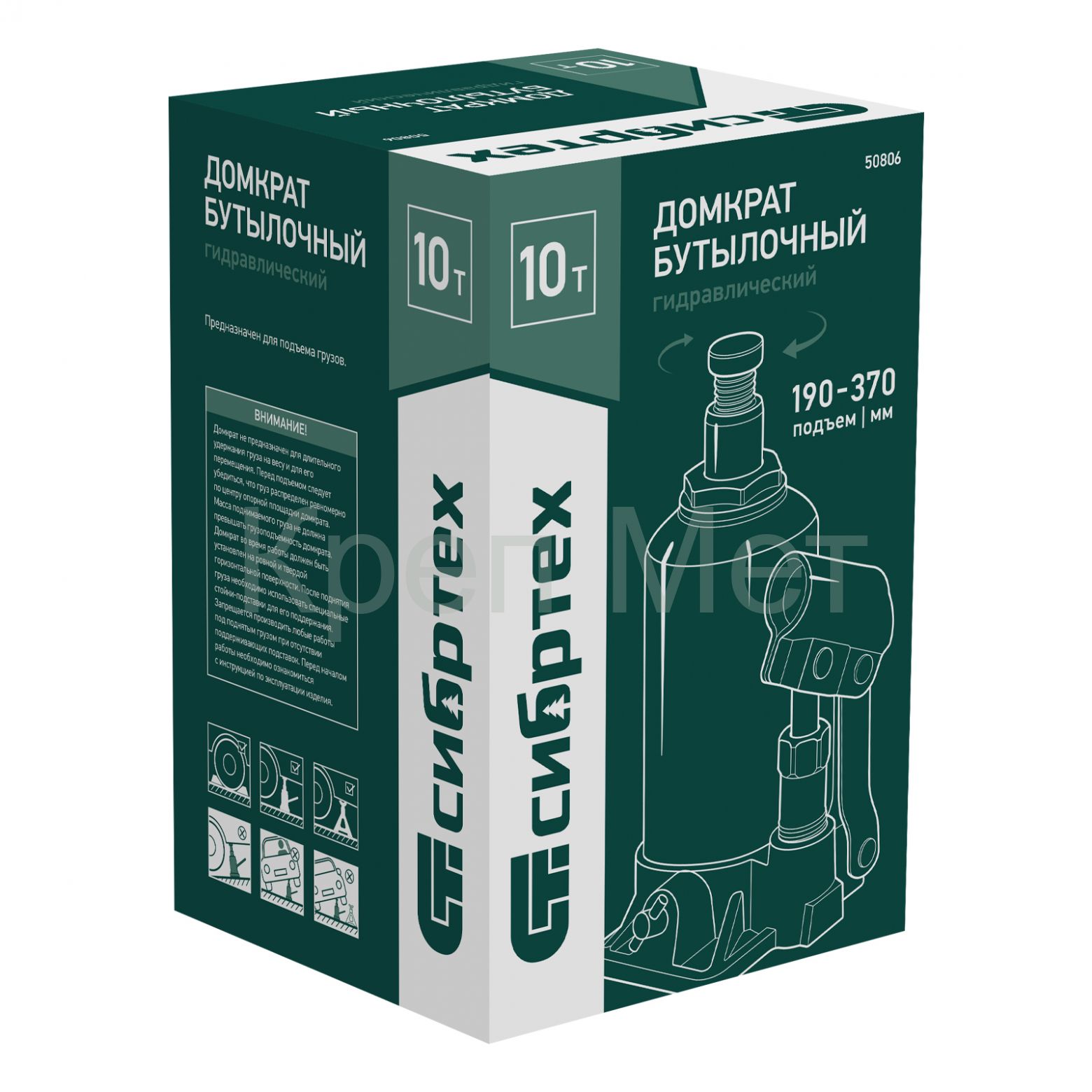 - Домкрат гидравлический бутылочный, 10 т, 190-370 мм Сибртех