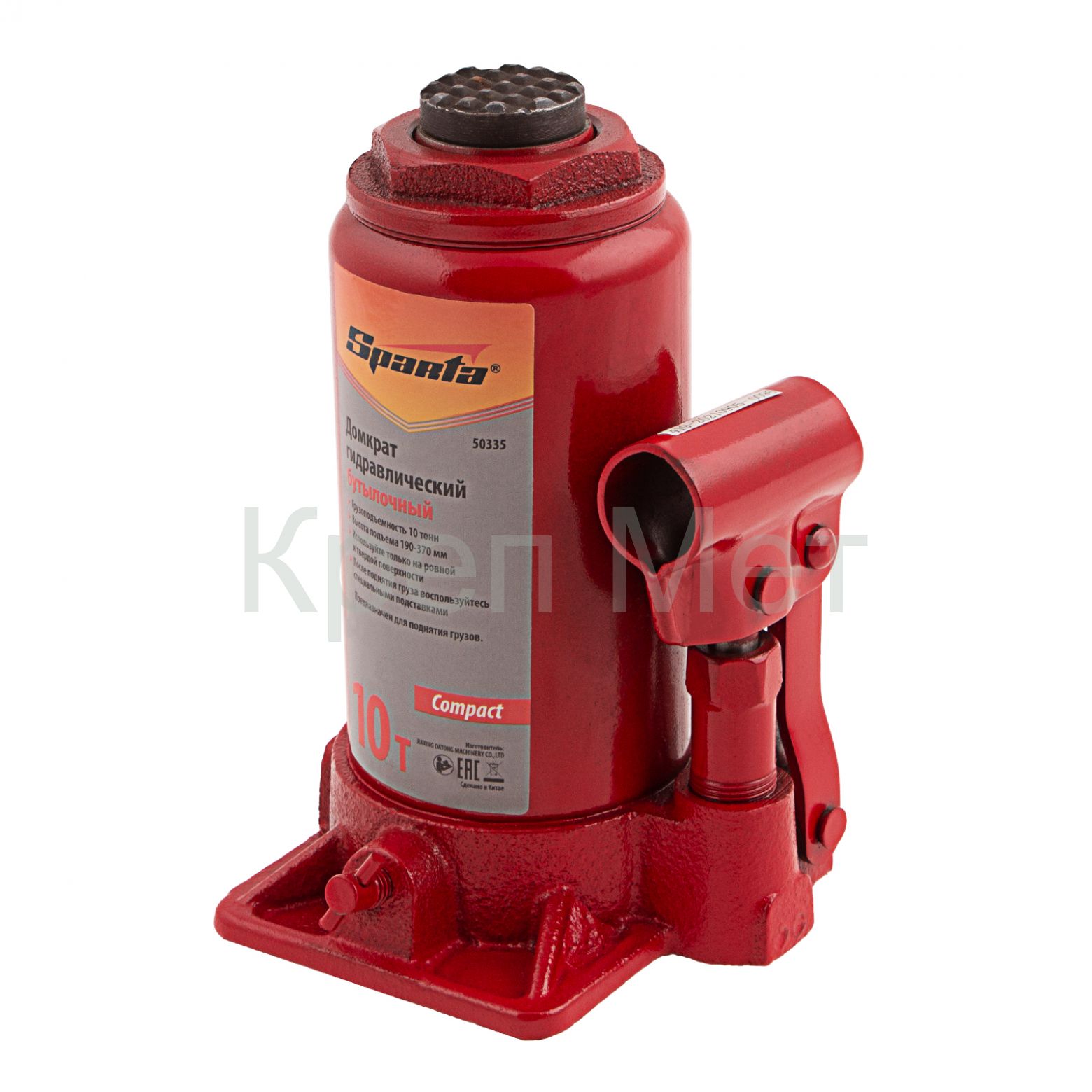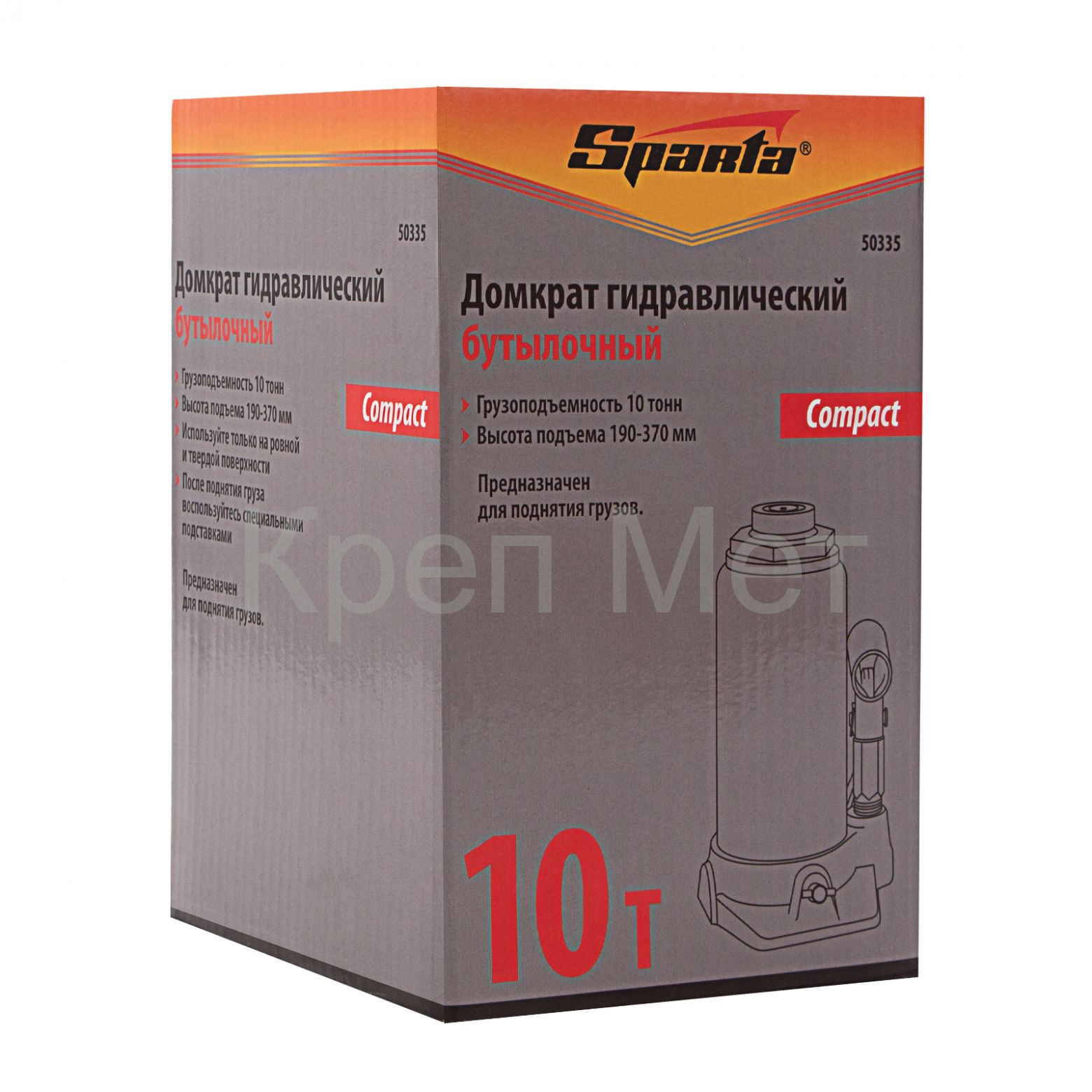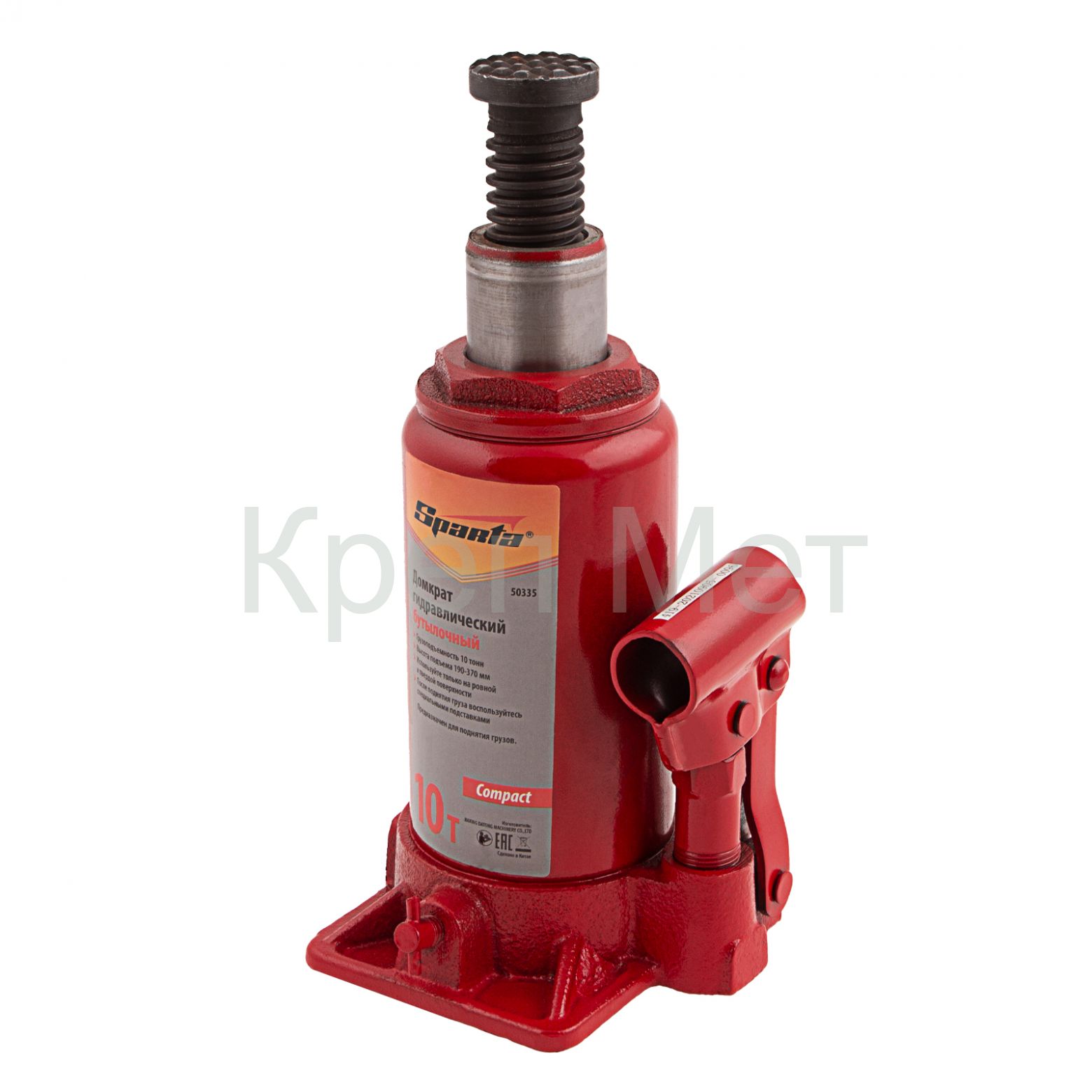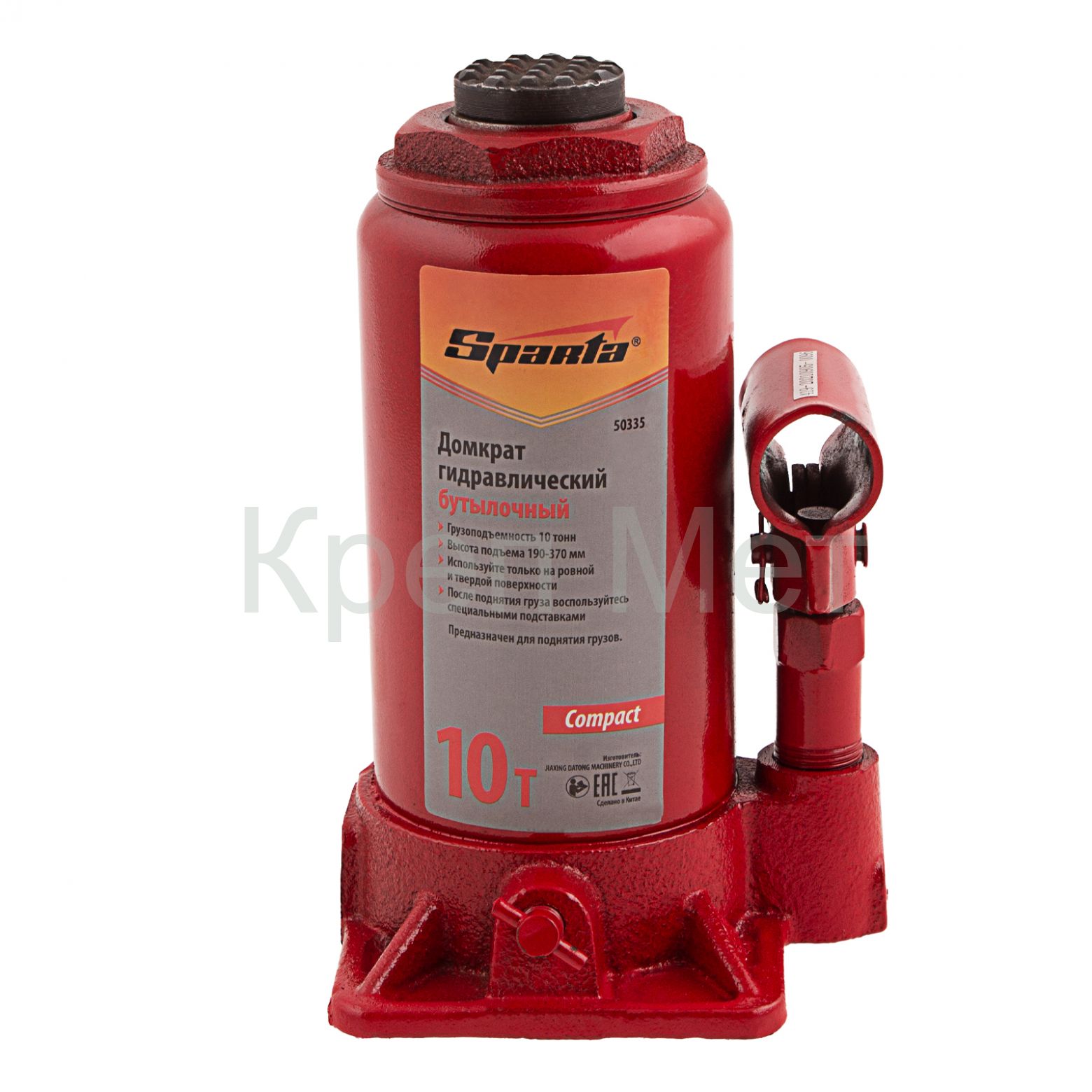 - Домкрат гидравлический бутылочный 10 т, h подъема 190-370 мм Sparta Compact