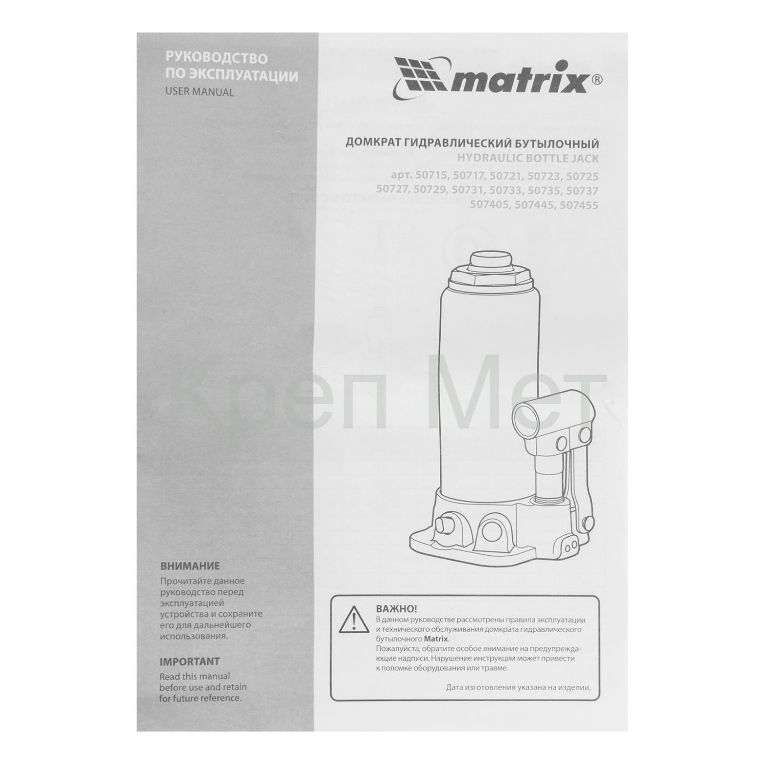 - Домкрат гидравлический бутылочный, 10 т, высота подъема 230-460 мм Matrix