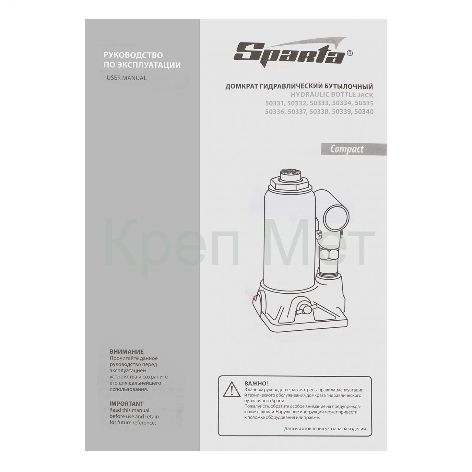 - Домкрат гидравлический бутылочный 12 т, h подъема 205-400 мм Sparta Compact