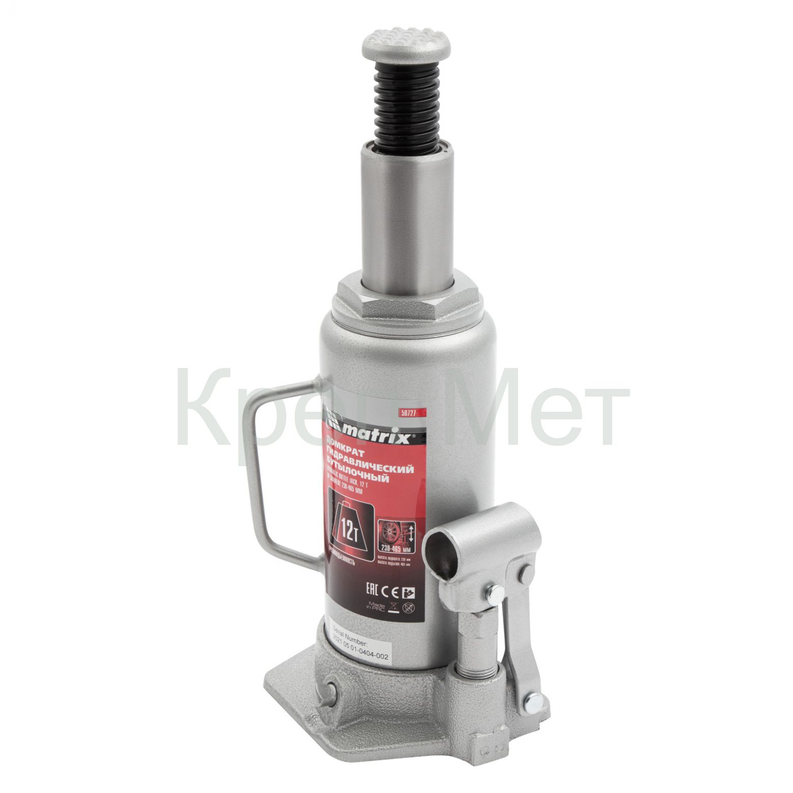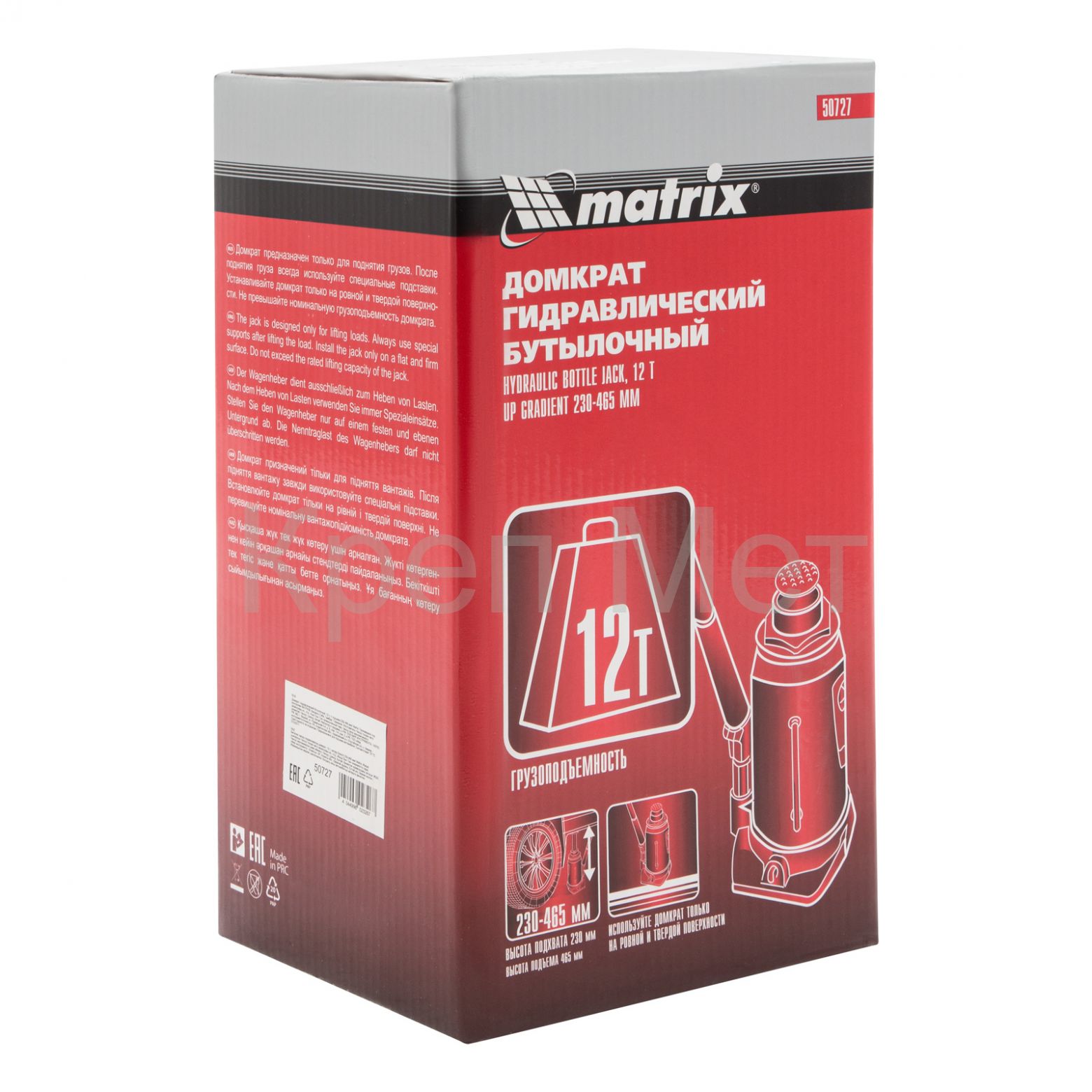- Домкрат гидравлический бутылочный, 12 т, высота подъема 230-465 мм Matrix