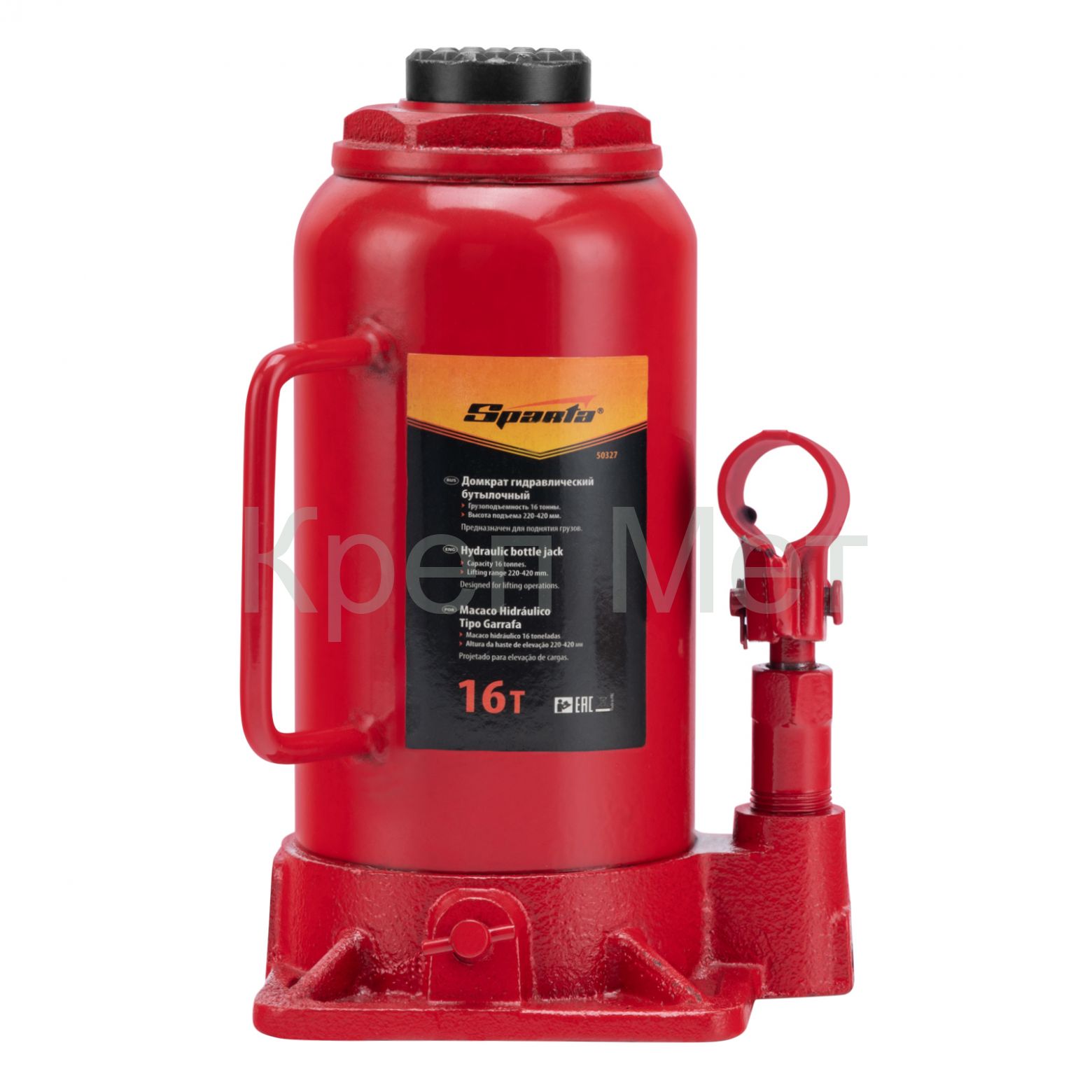 - Домкрат гидравлический бутылочный, 16 т, h подъема 220-420 мм Sparta