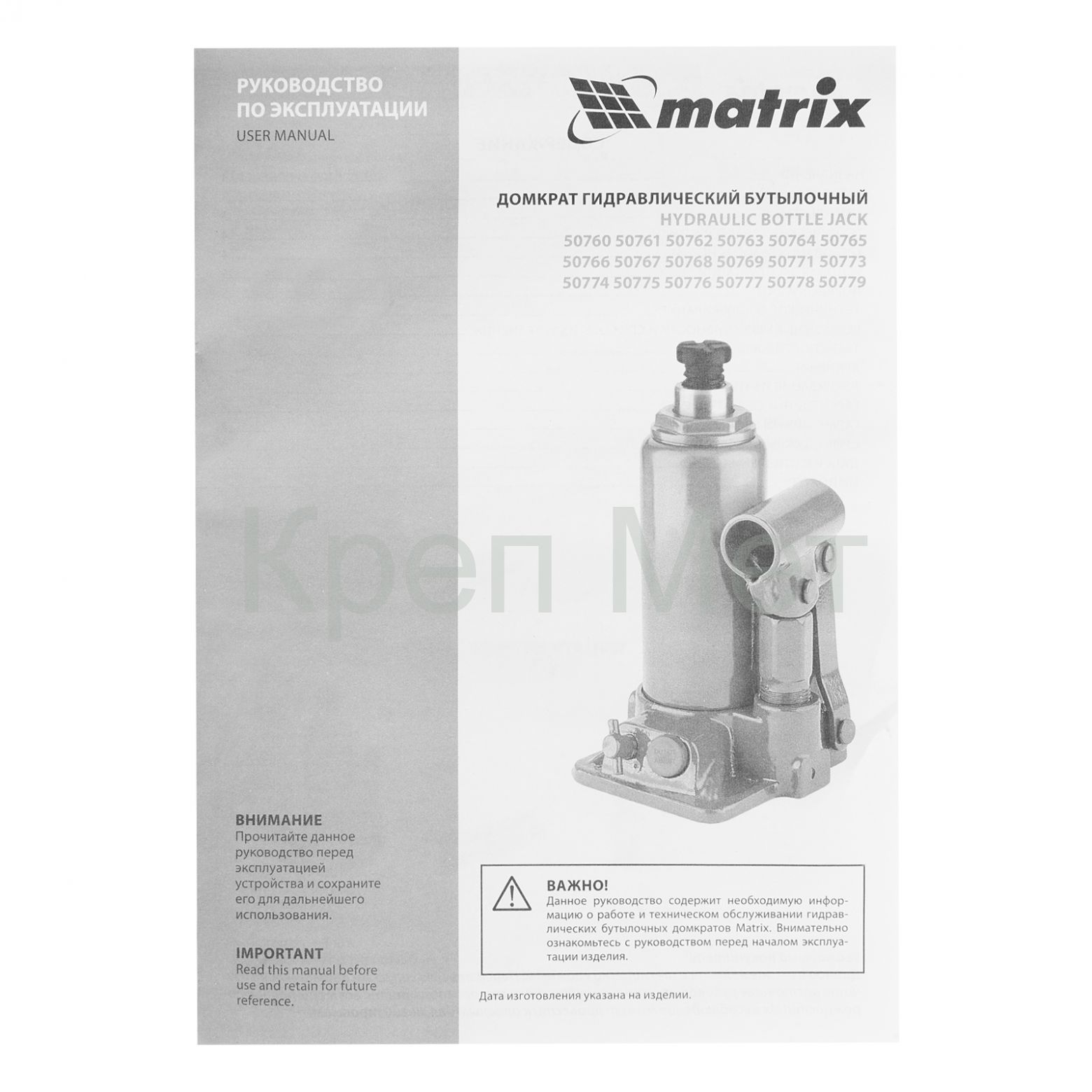 - Домкрат гидравлический бутылочный, 16 т, h подъема 230-460 мм Matrix