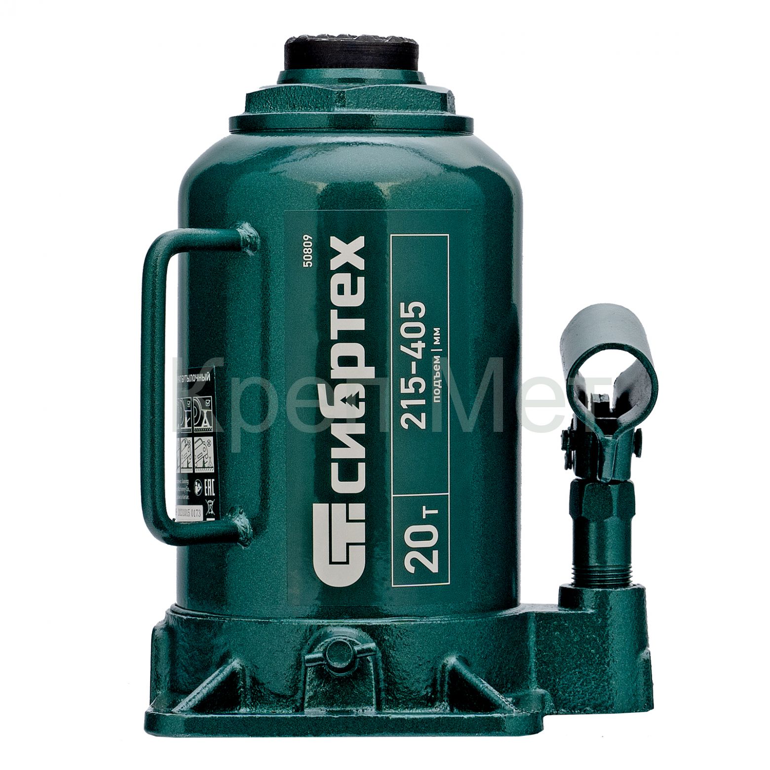 - Домкрат гидравлический бутылочный, 20 т, 215-405 мм Сибртех