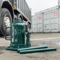 Домкрат гидравлический бутылочный Сибртех 50809 предназначен для подъема грузов массой до 20 т на высоту от 215 до 405 мм. Не требует больших усилий от пользователя и значительно облегчает рабочий процесс. Домкрат будет полезен при проведении техобслуживания машины в автосервисе или гараже.
