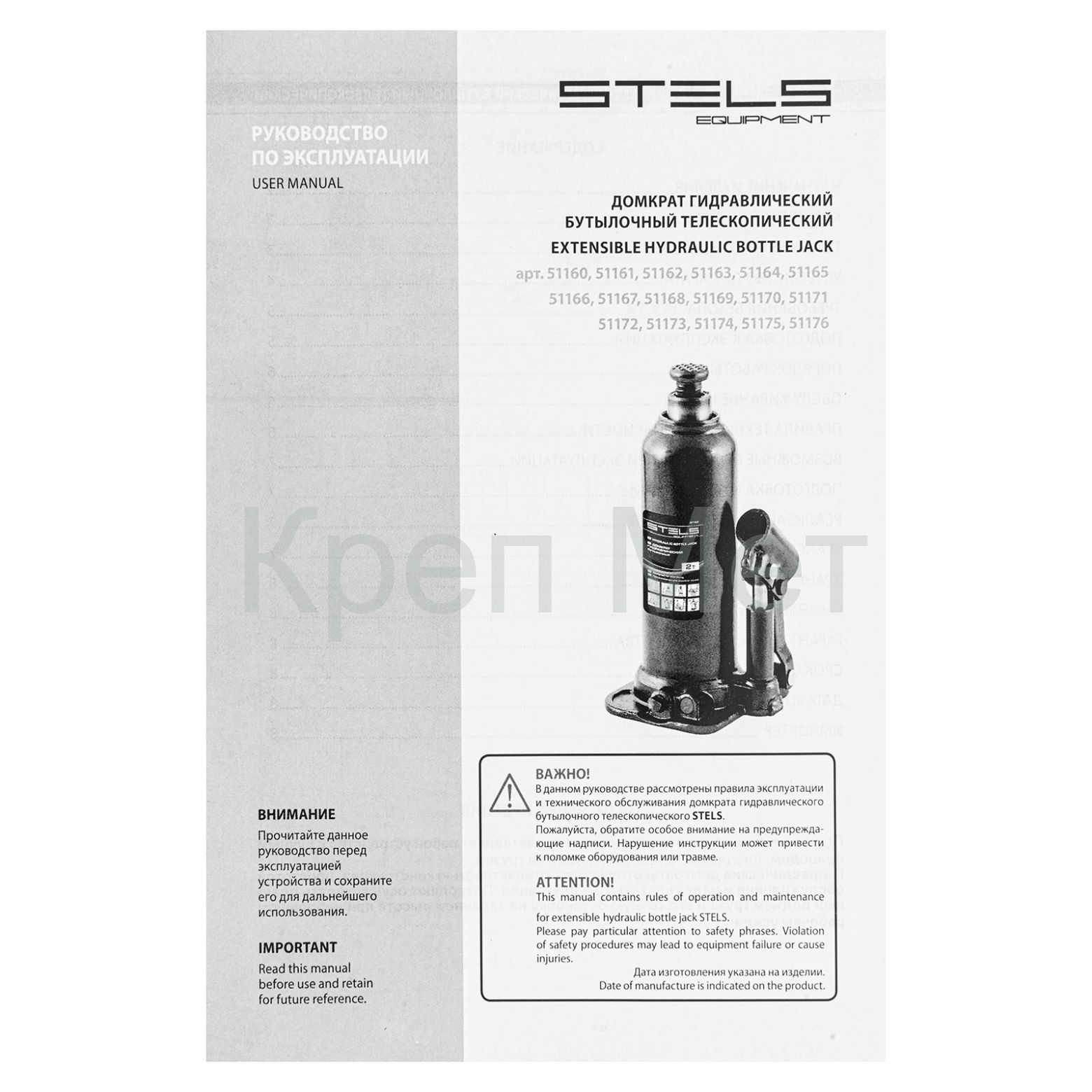 - Домкрат гидравлический бутылочный, 20 т, h подъема 235-445 мм Stels