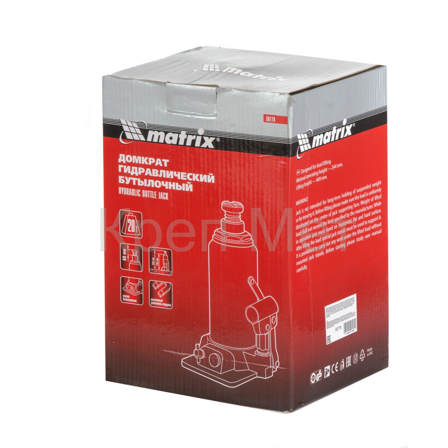 - Домкрат гидравлический бутылочный, 20 т, h подъема 244-449 мм Matrix