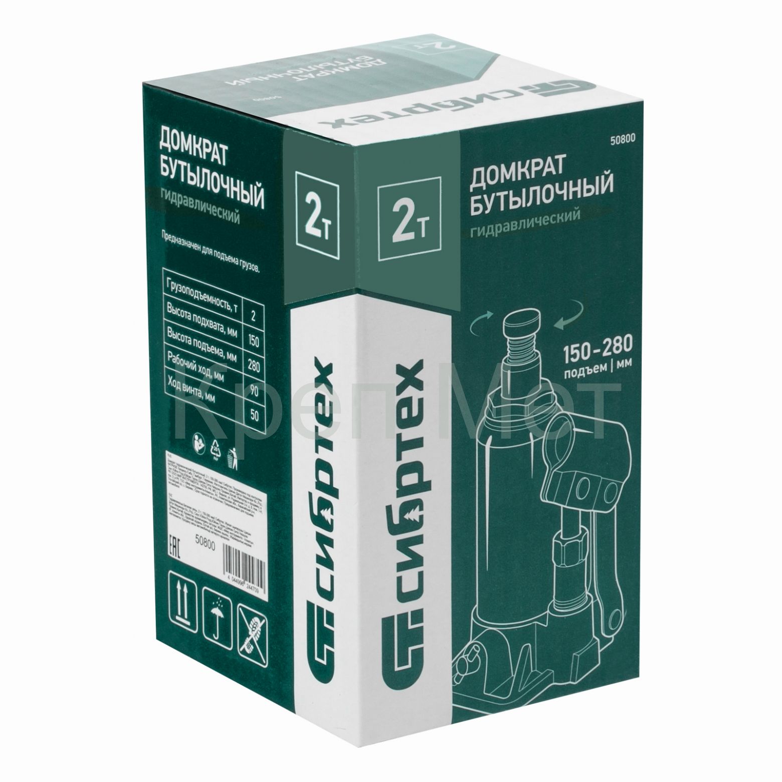 - Домкрат гидравлический бутылочный, 2 т, 150-280 мм Сибртех
