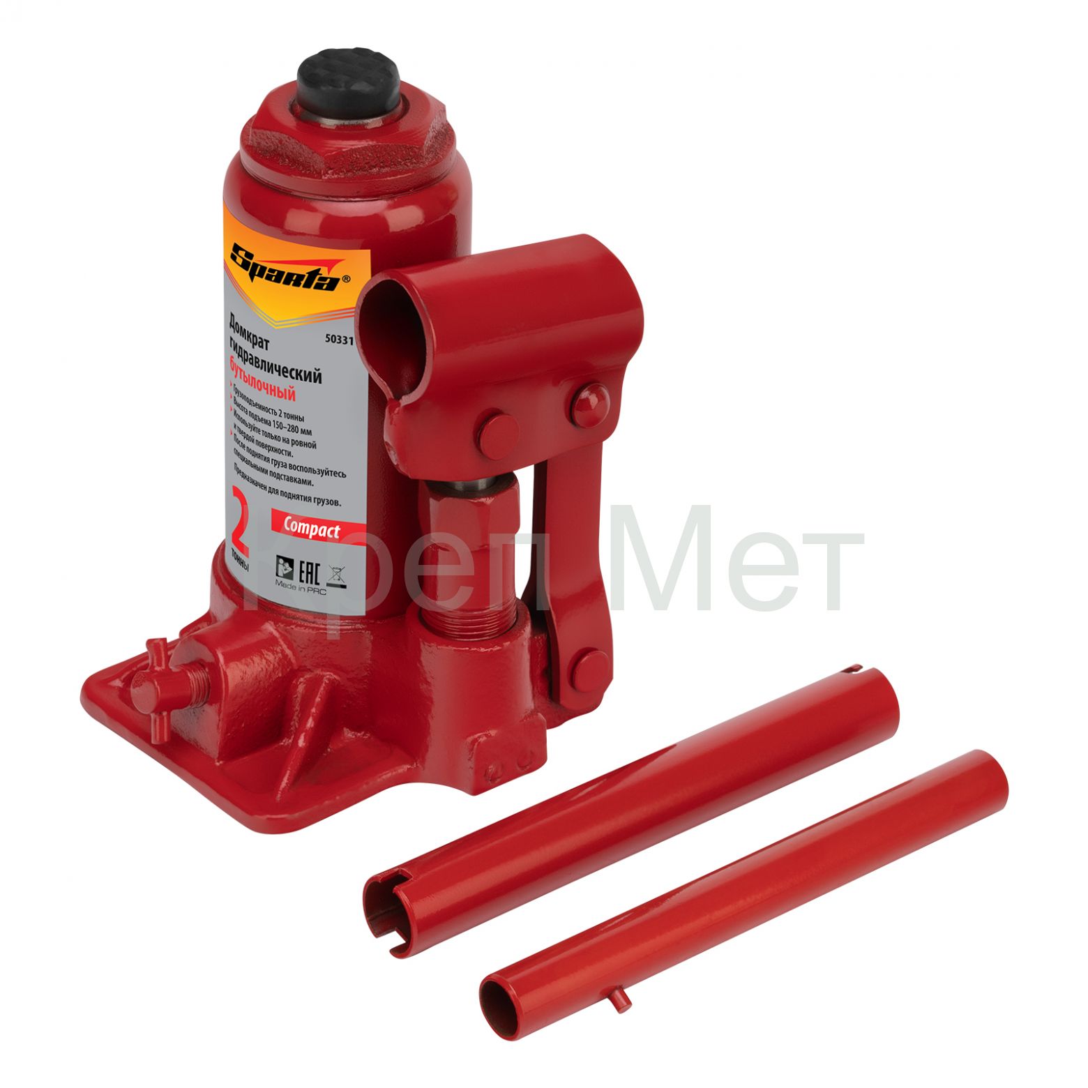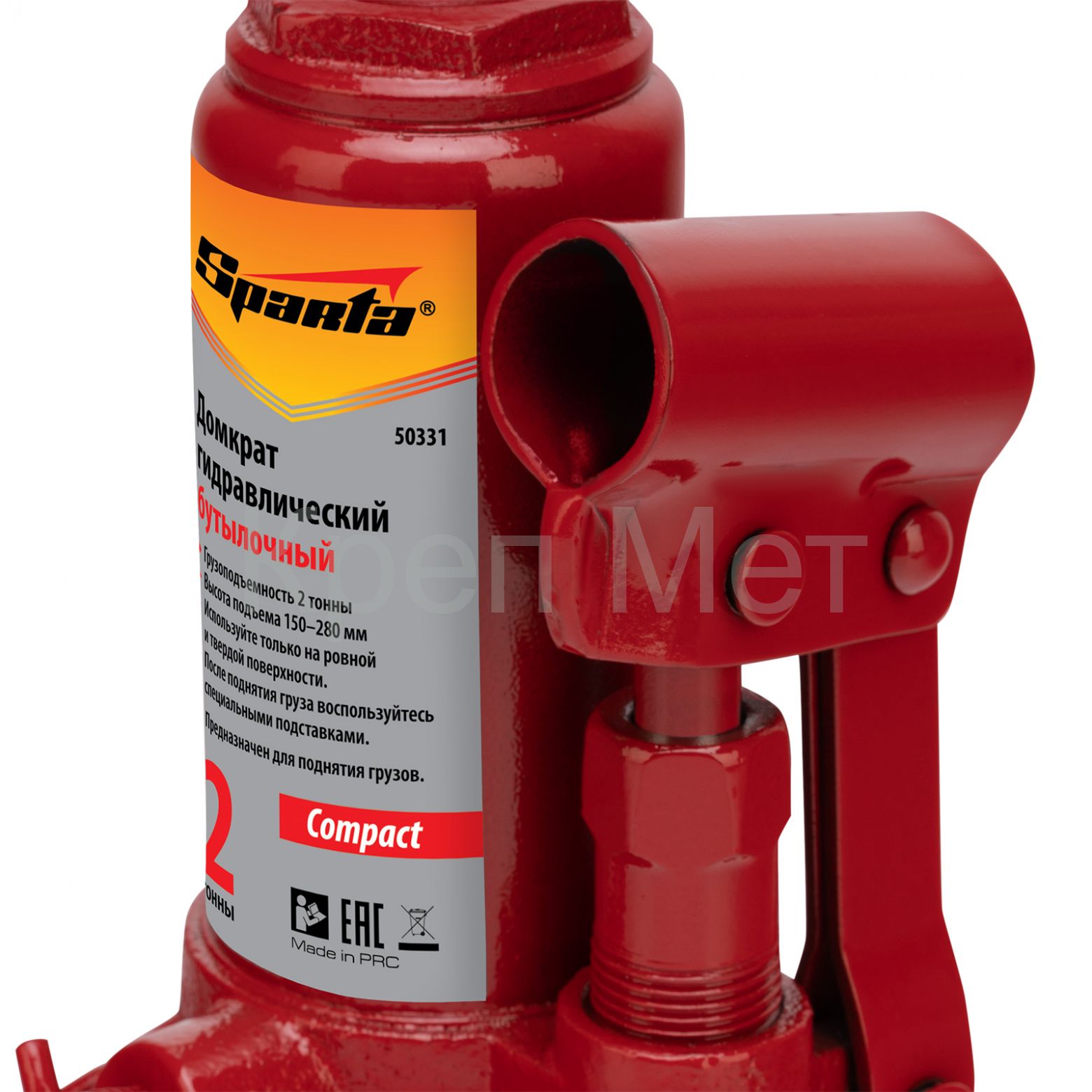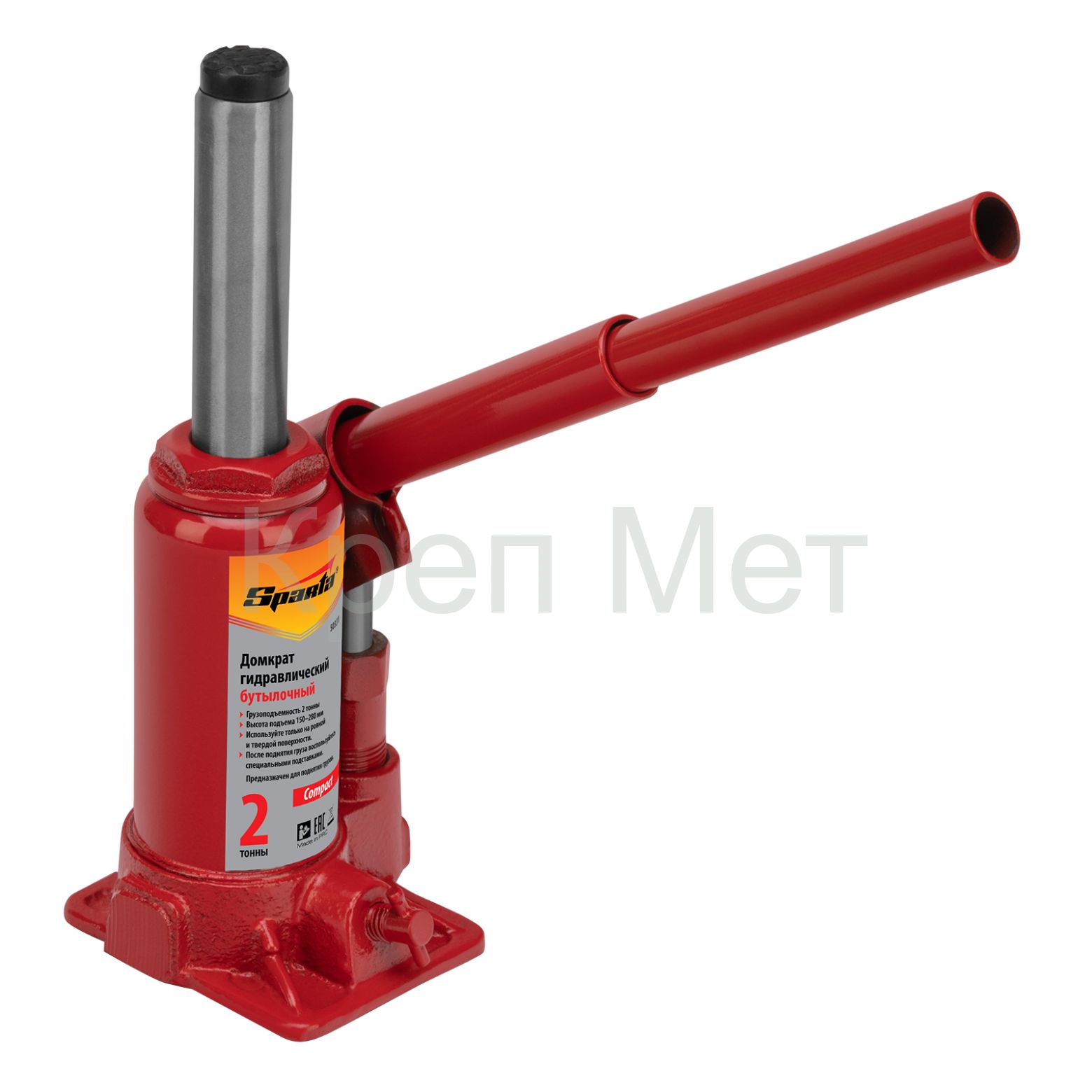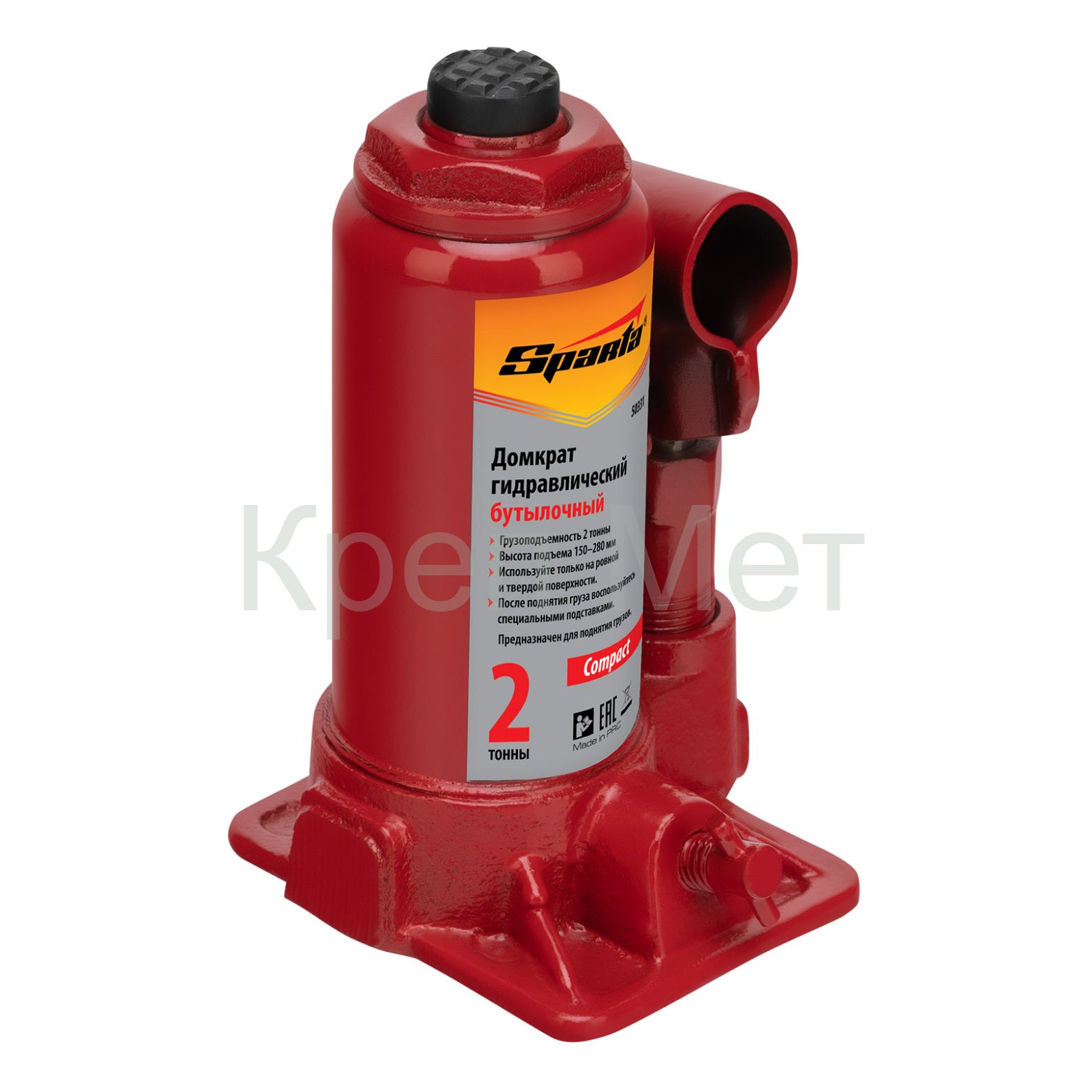 - Домкрат гидравлический бутылочный 2 т, h подъема 150-280 мм Sparta Compact