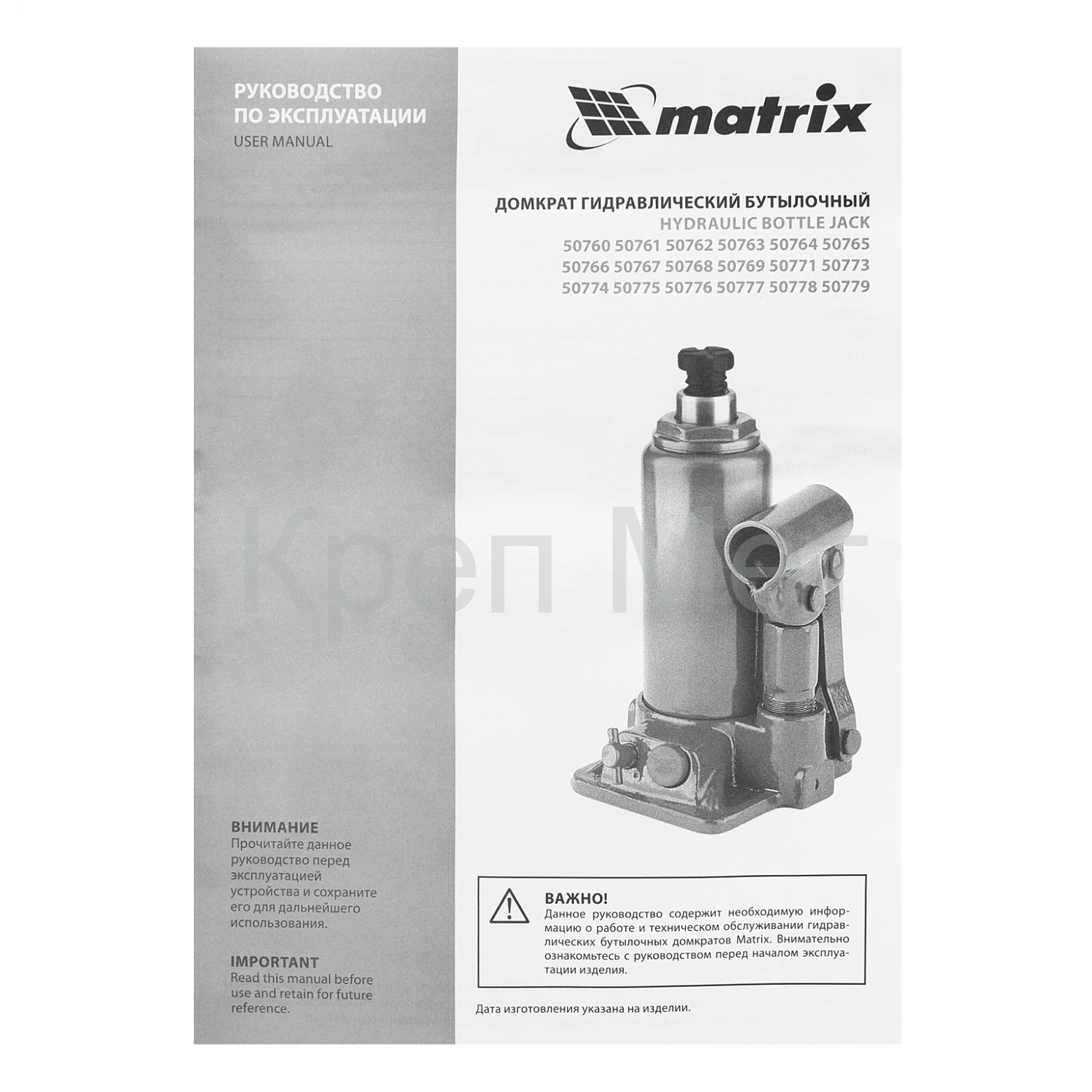 - Домкрат гидравлический бутылочный, 2 т, h подъема 181-345 мм Matrix