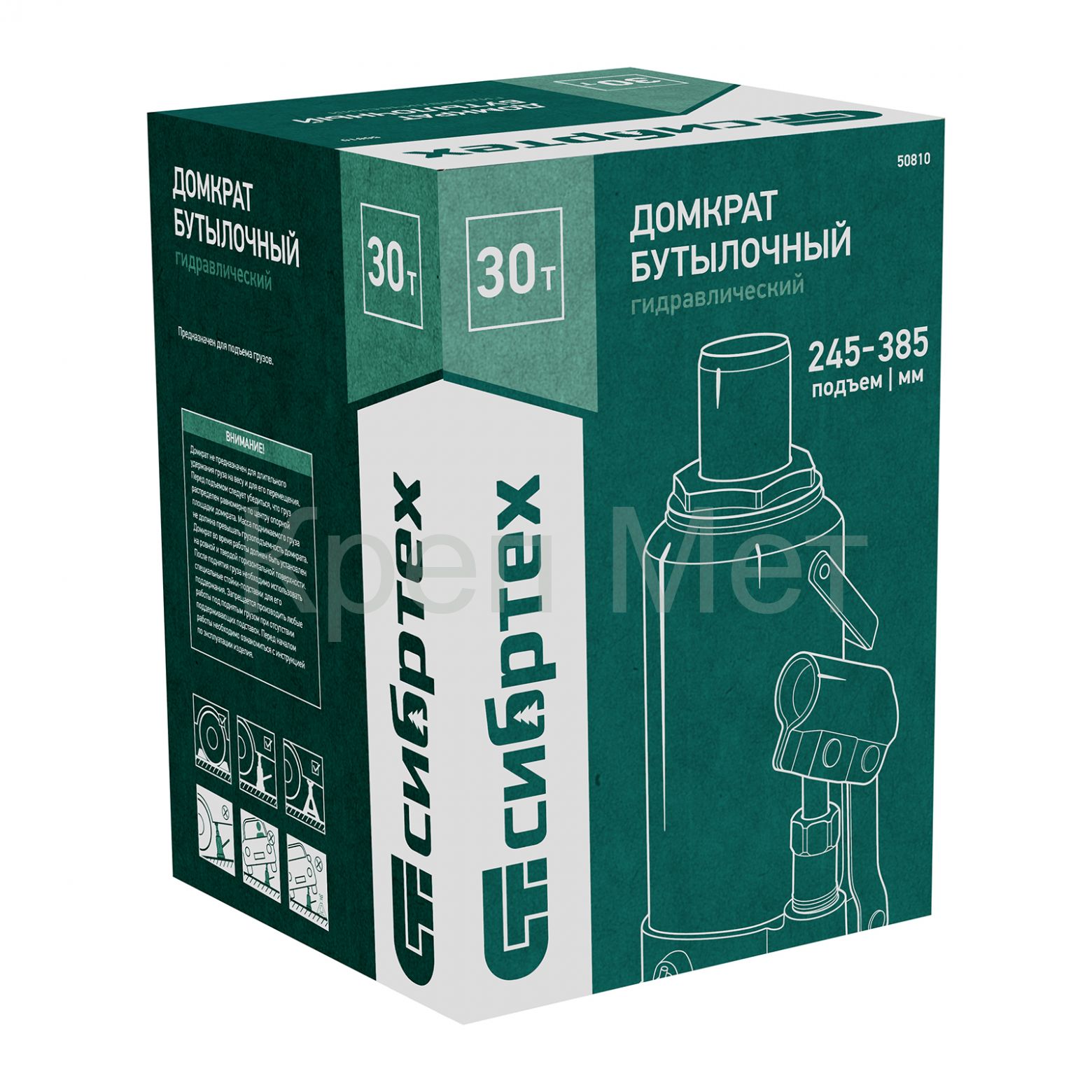 - Домкрат гидравлический бутылочный, 30 т, 245-385 мм Сибртех