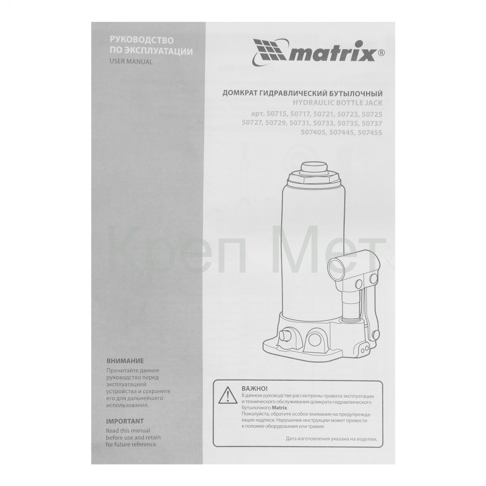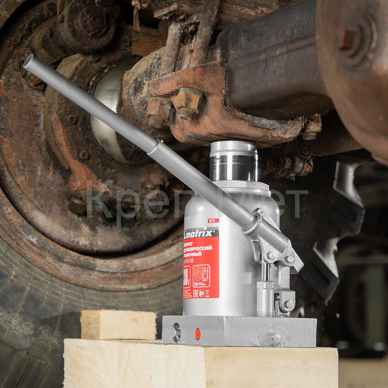 Домкрат гидравлический бутылочный Matrix 50735 используется для поднятия грузов массой до 30 т на высоту 260-415 мм. Подходит для автомобилей с высоким клиренсом. Домкрат будет полезен автолюбителям в гараже и дороге, а также сотрудникам СТО.