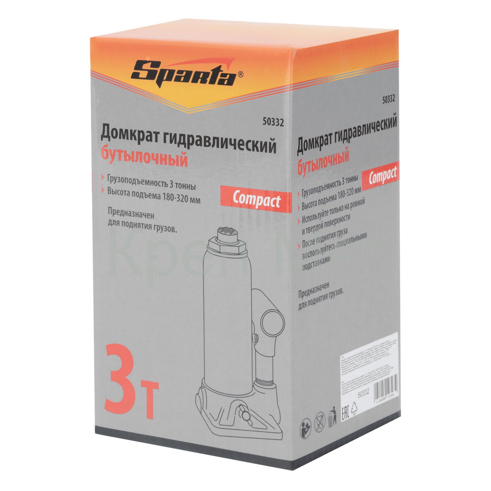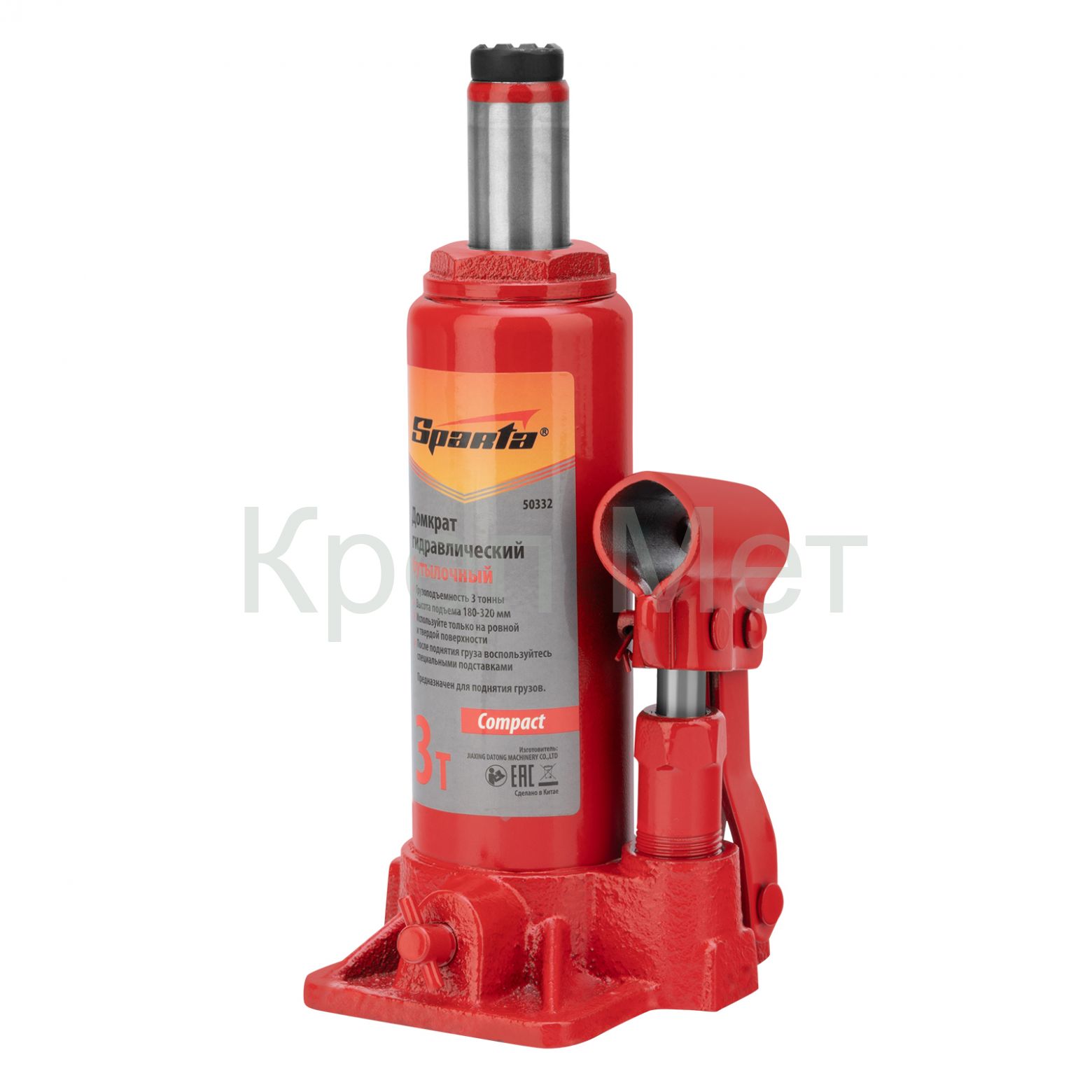 - Домкрат гидравлический бутылочный 3т, h подъема 180-320 мм Sparta Compact