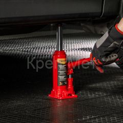 Гидравлический бутылочный домкрат Sparta 50322 рассчитан на подъем грузов весом до 3 т на высоту от 180 до 340 мм. Он пригодится как автолюбителям в гараже, так и профессиональным мастерам в автосервисах. Домкрат обеспечивает плавный подъем груза без особых усилий со стороны пользователя.
