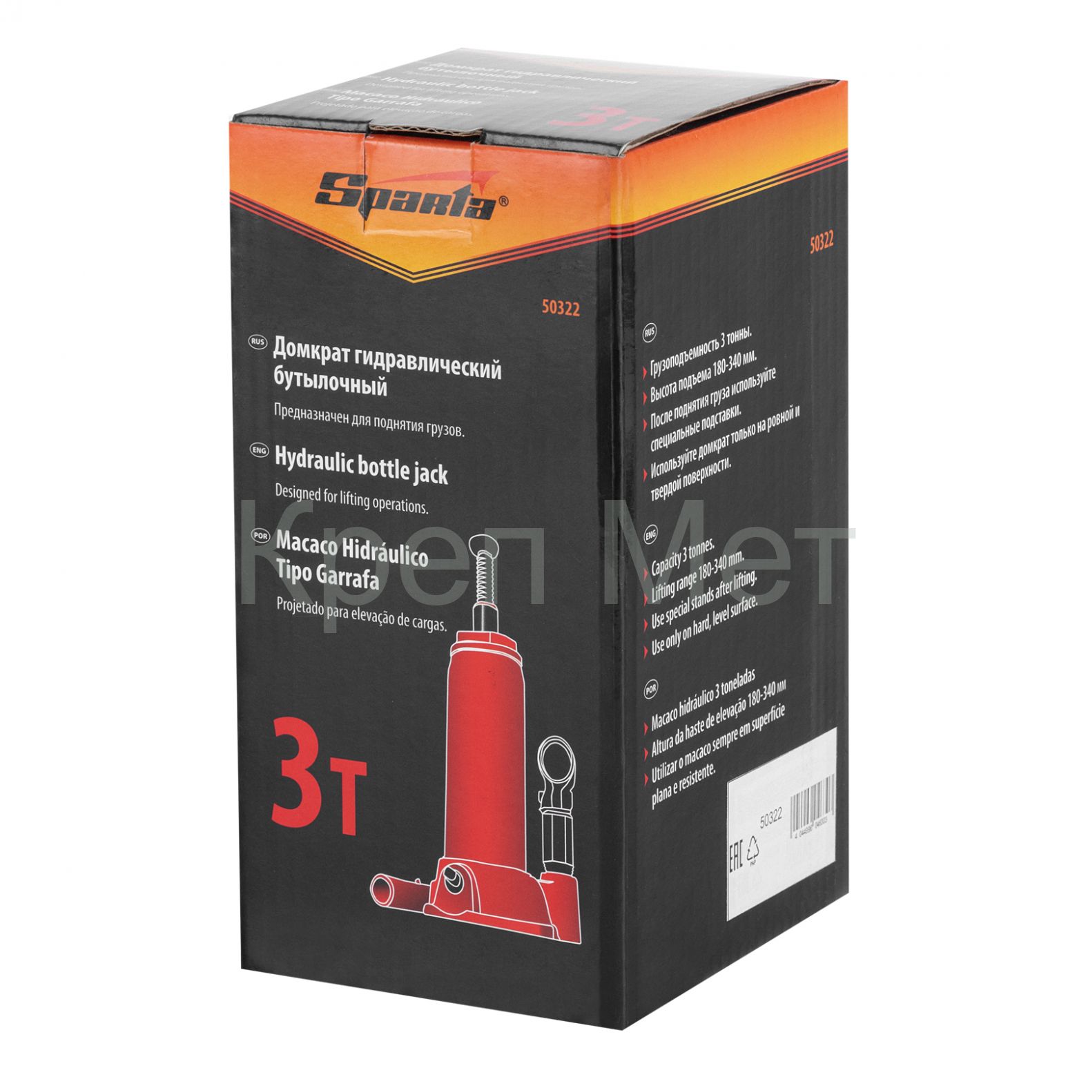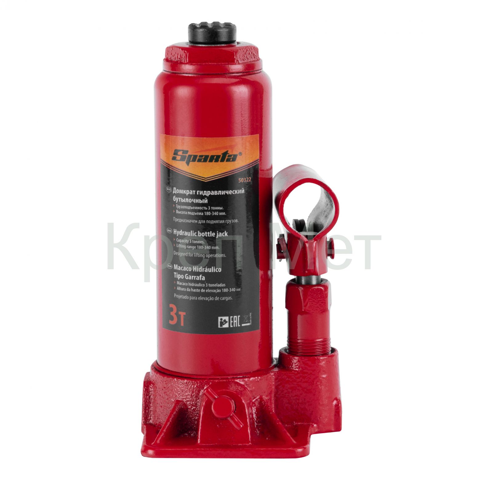 - Домкрат гидравлический бутылочный, 3т, h подъема 180-340 мм Sparta
