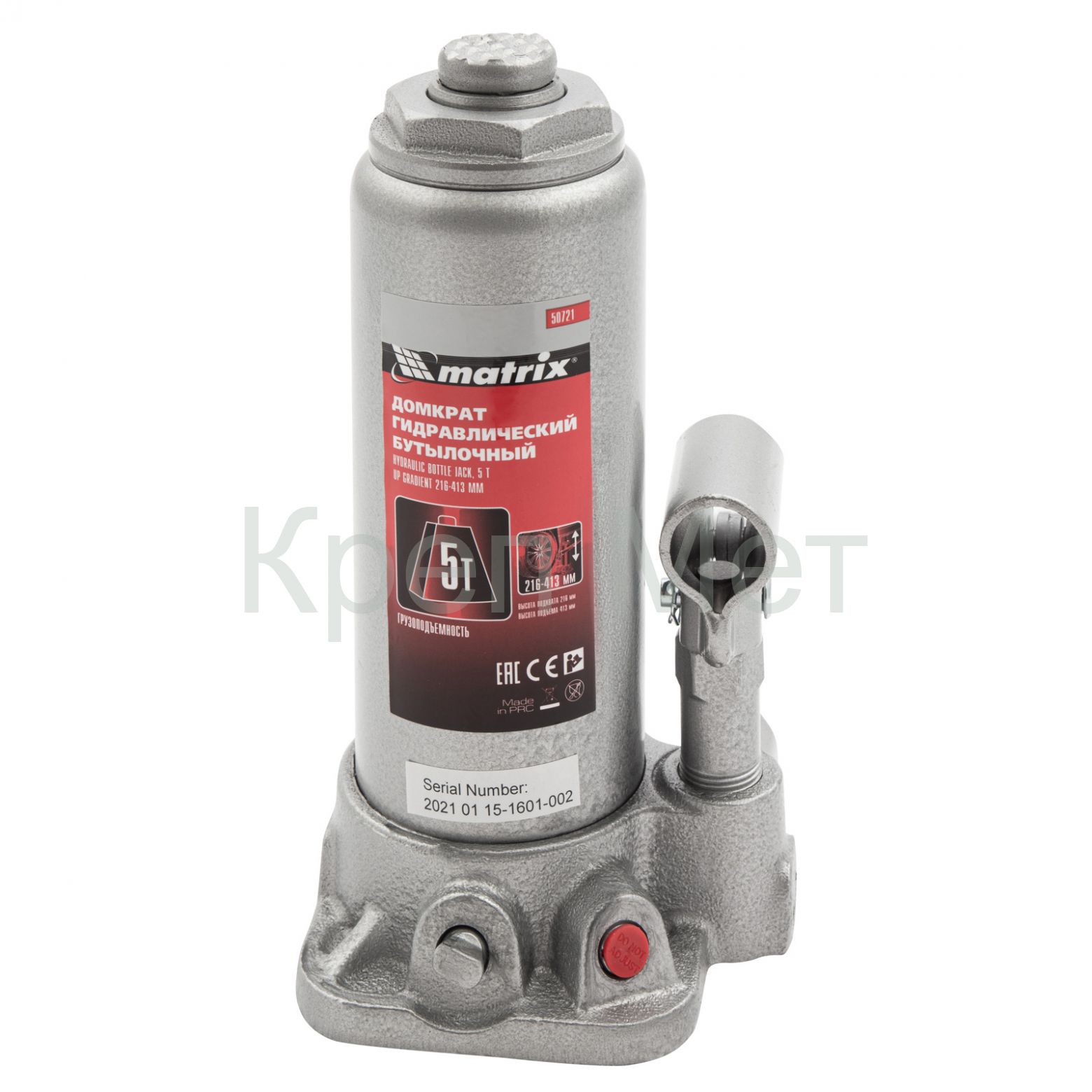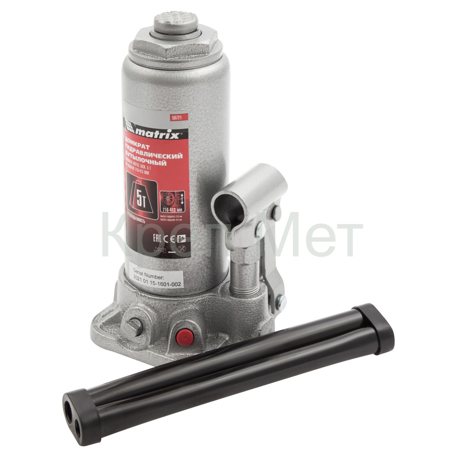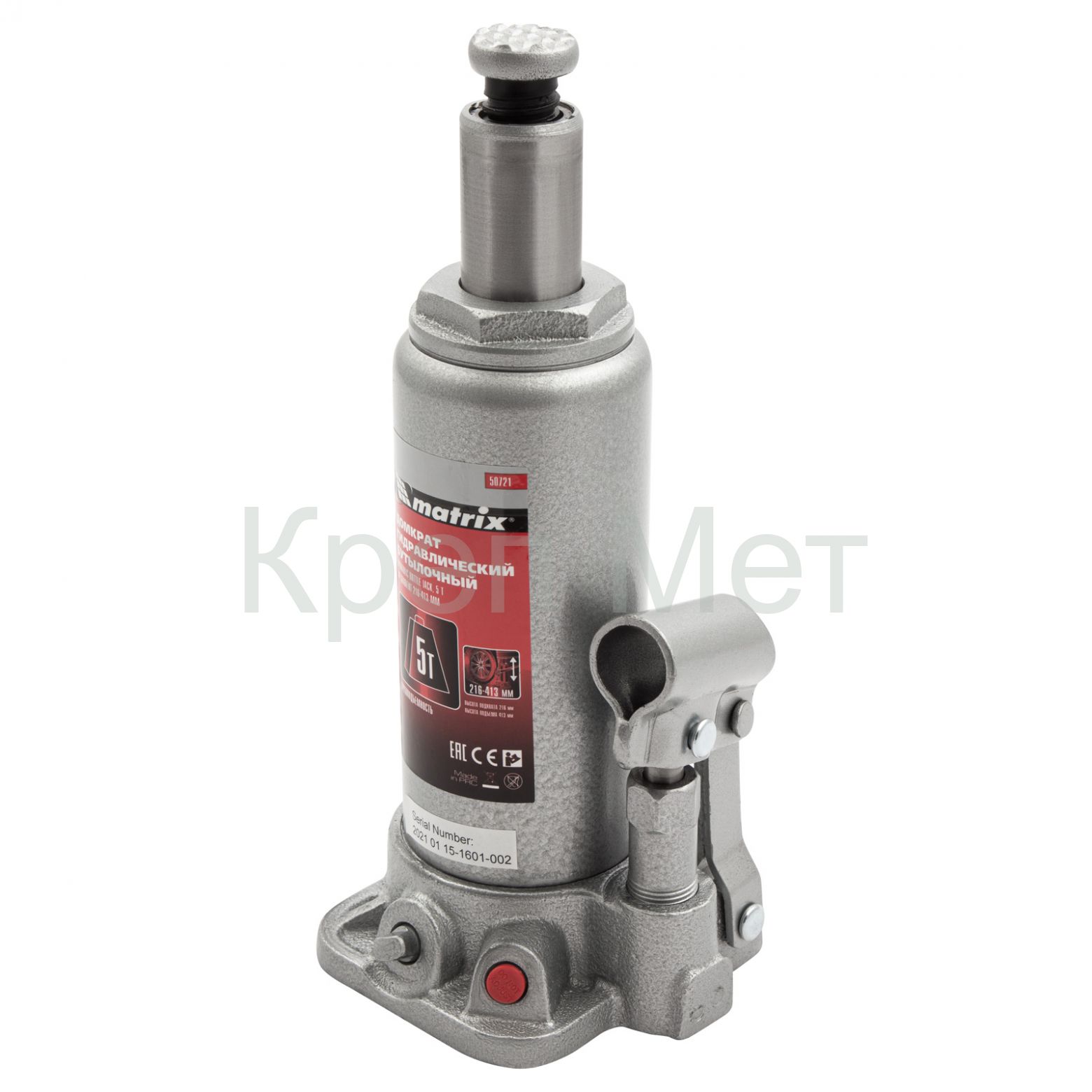 Домкрат гидравлический бутылочный, 5 т, высота подъема 216-413 мм Matrix