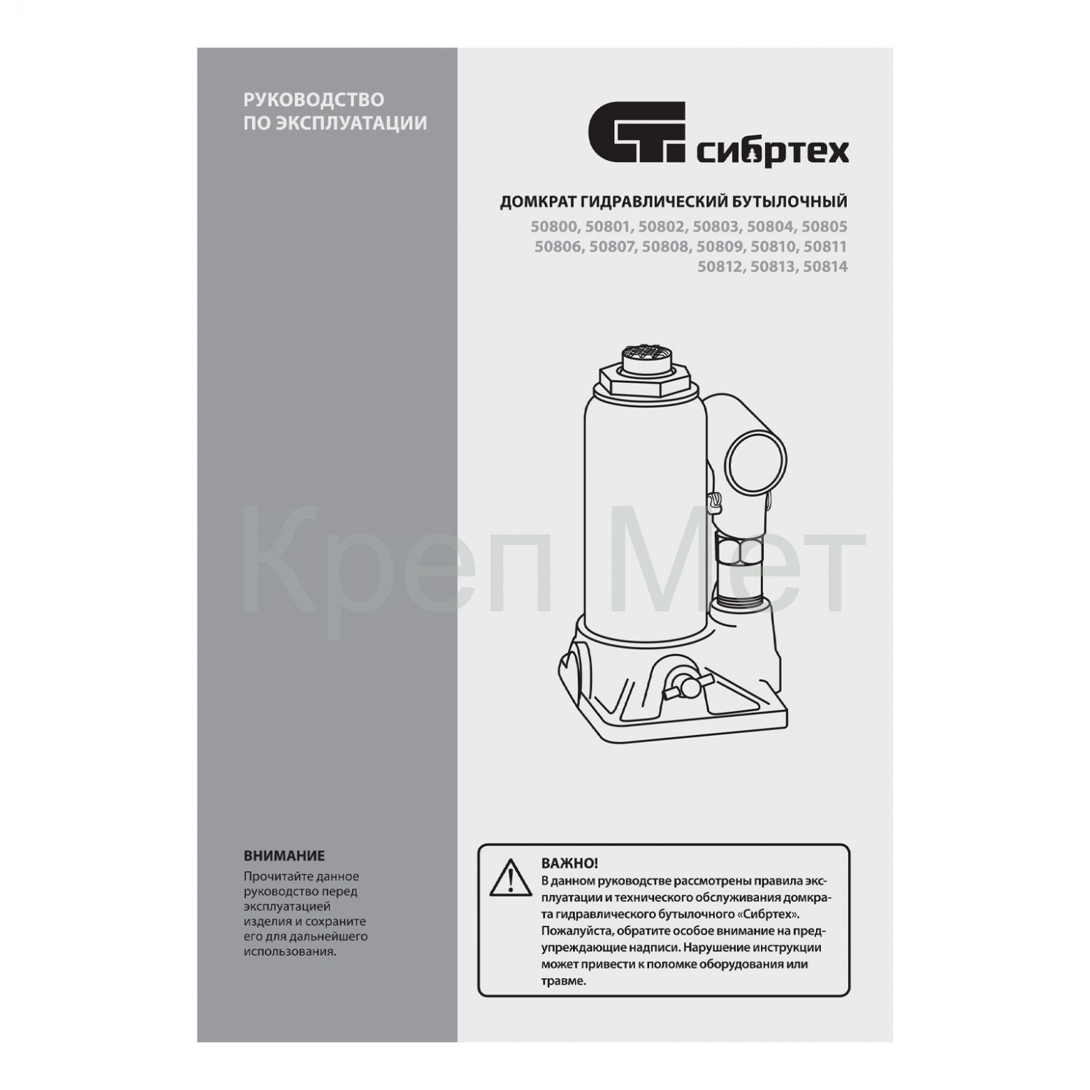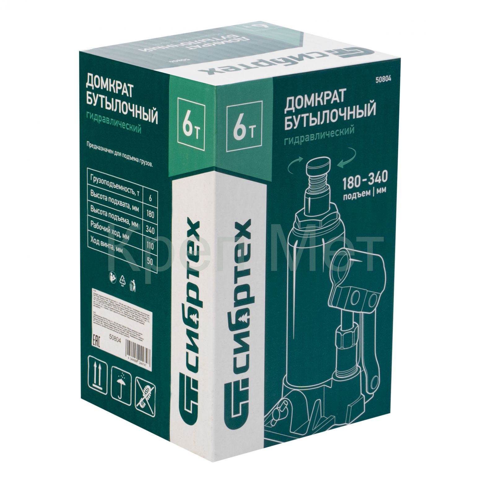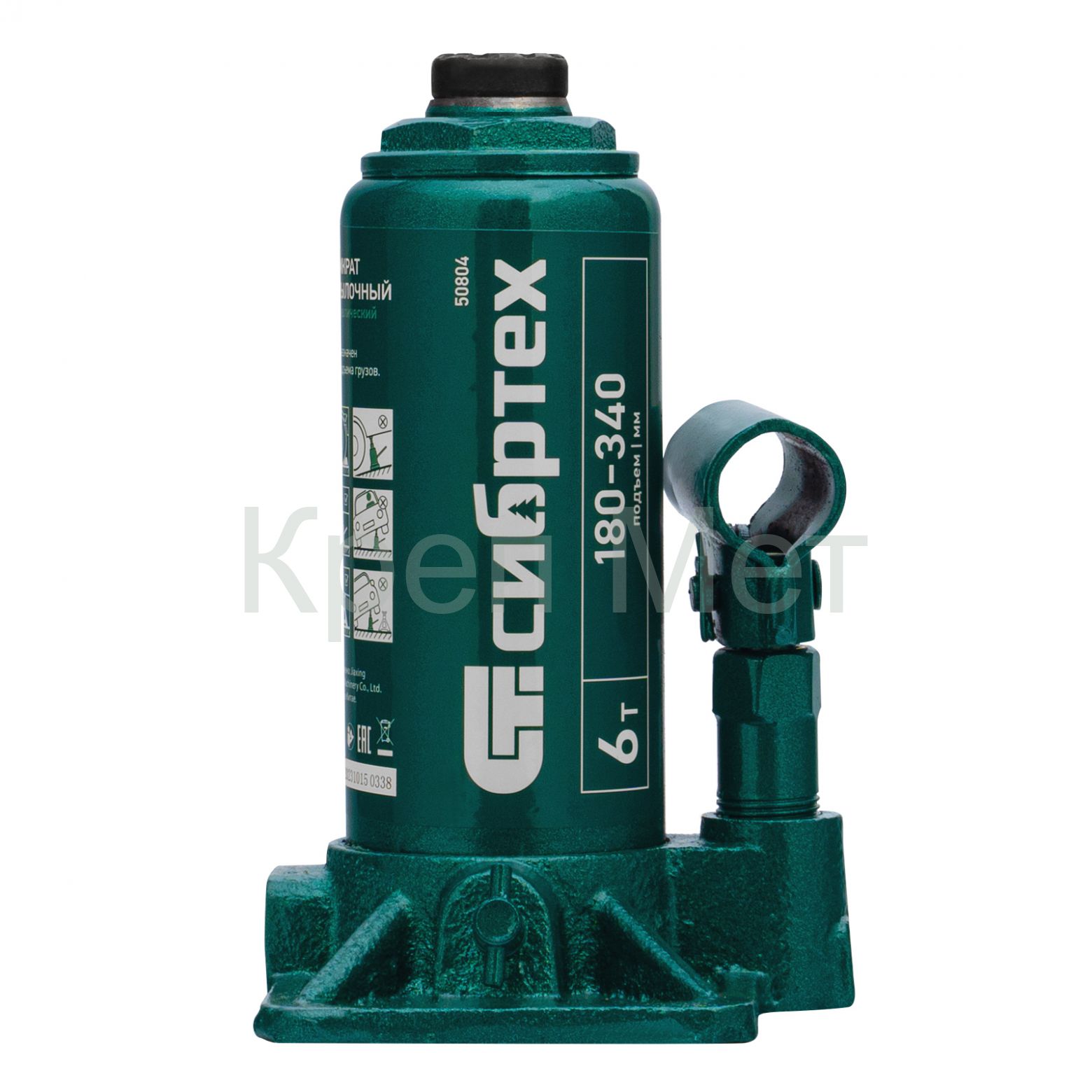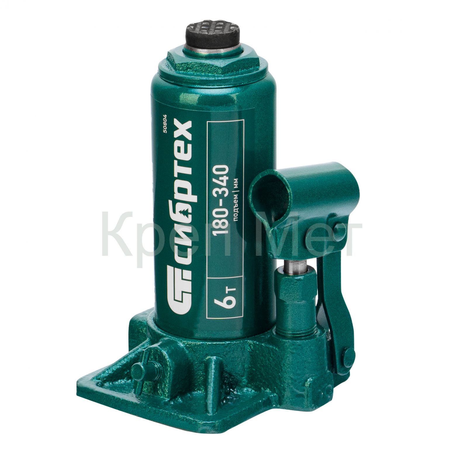 - Домкрат гидравлический бутылочный, 6 т, 180-340 мм Сибртех
