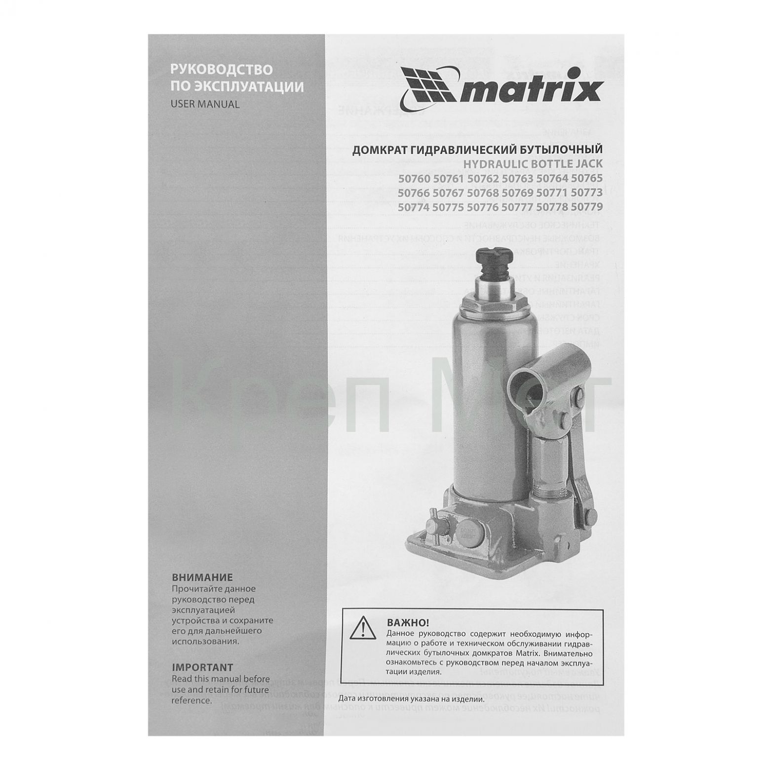 - Домкрат гидравлический бутылочный, 8 т, h подъема 230-457 мм Matrix