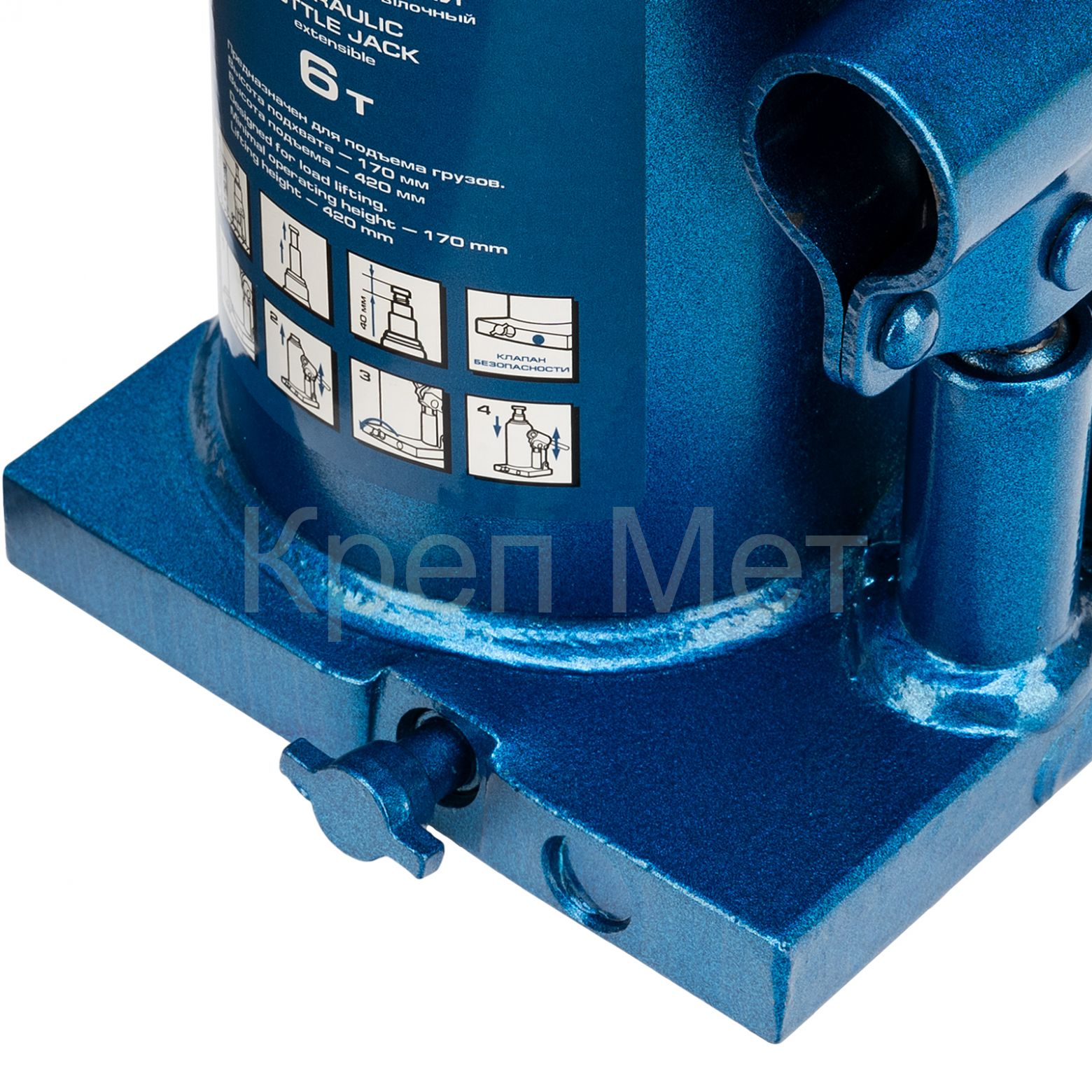 - Домкрат гидравлический бутылочный телескопический, 6 т, H подъема 170-420 мм Stels