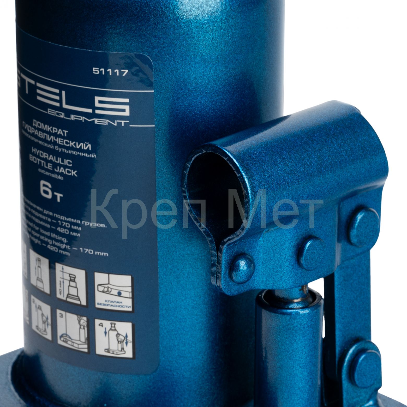 Домкрат гидравлический бутылочный телескопический, 6 т, H подъема 170-420 мм Stels