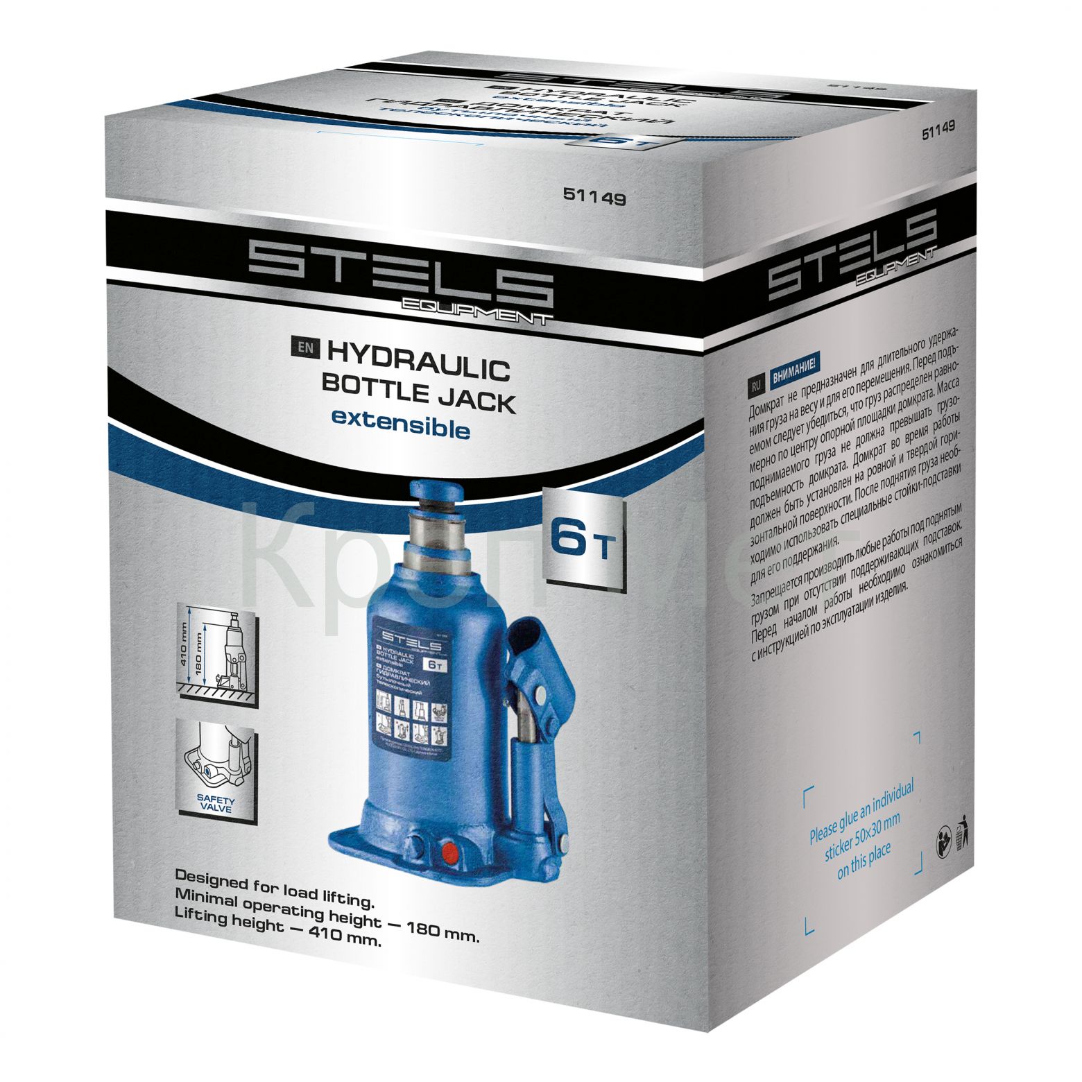 - Домкрат гидравлический бутылочный телескопический, 6 т, подъем 180-410 мм Stels