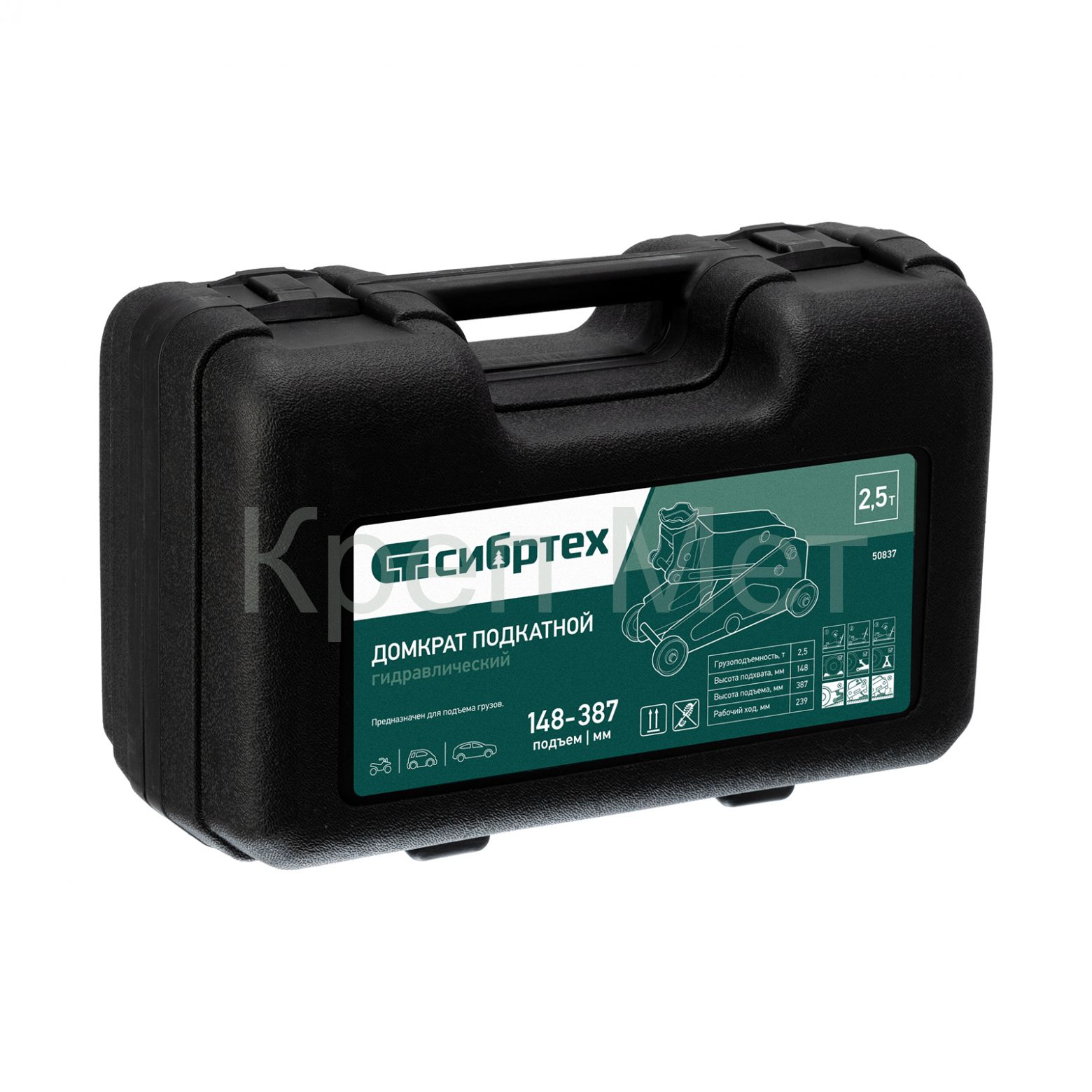 Домкрат гидравлический подкатной, 2,5 т, 148-387 мм, в пласт. кейсе Сибртех