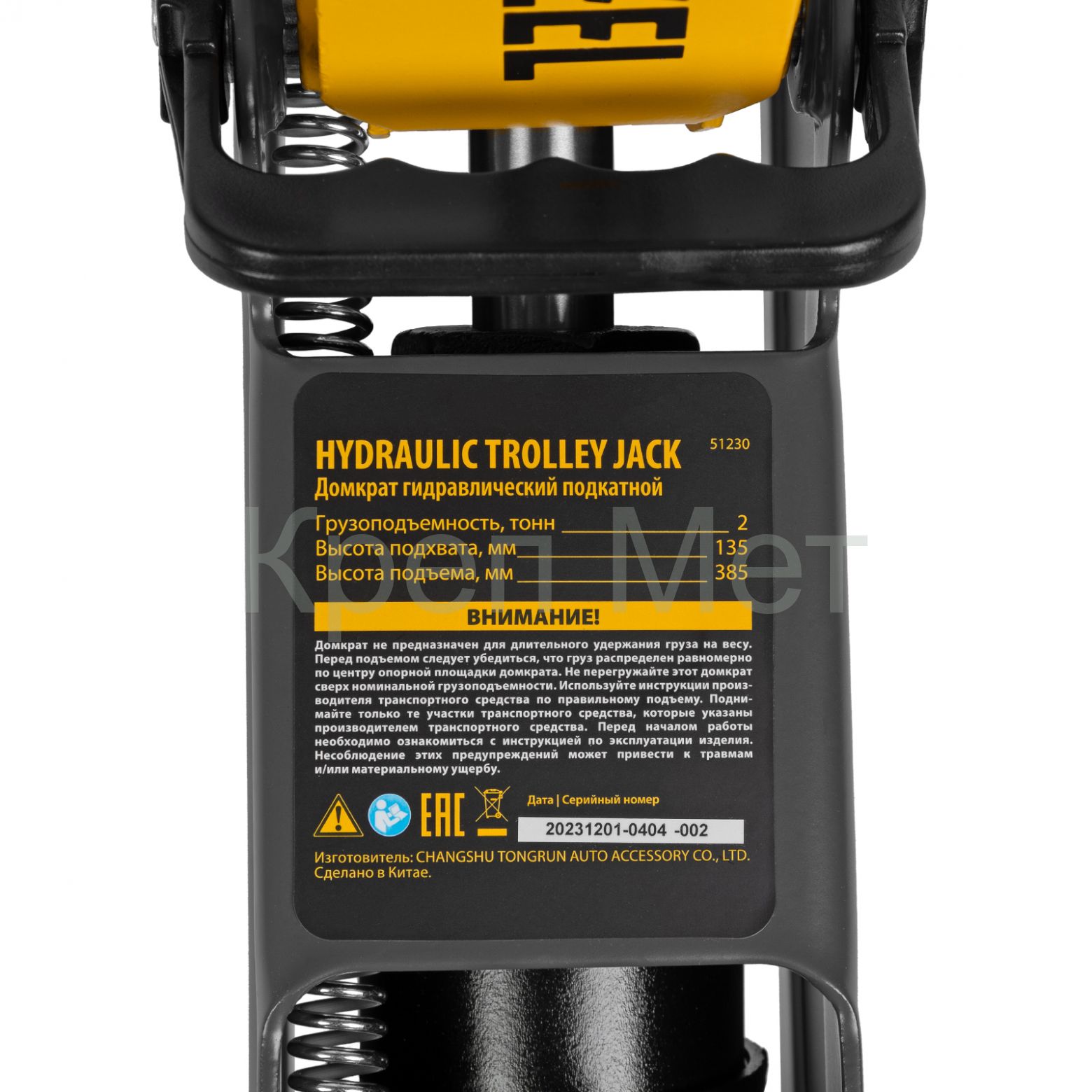 - Домкрат гидравлический подкатной, 2 т, 135-385 мм Denzel