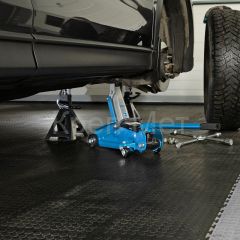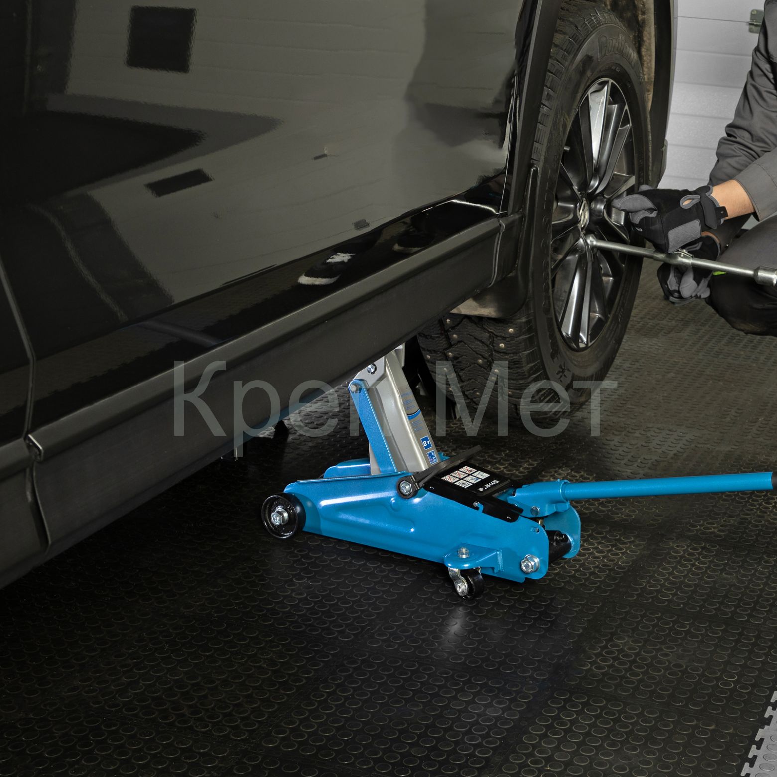- Маневренность — благодаря поворотным колесам домкрат можно быстро подвести под груз.