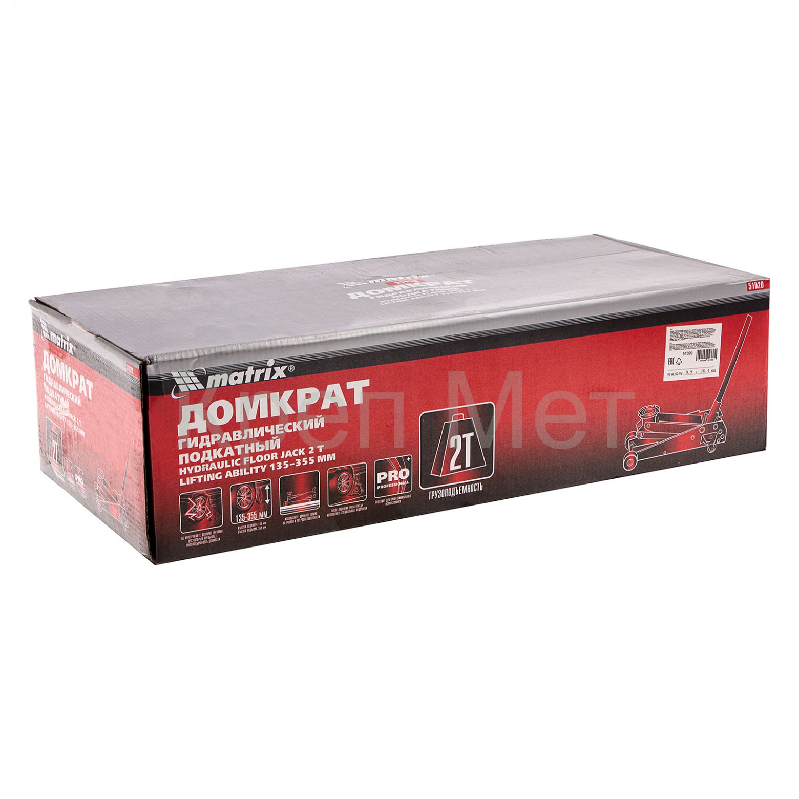 - Домкрат гидравлический подкатной, 2 т, высота подъема 135-355 мм Matrix