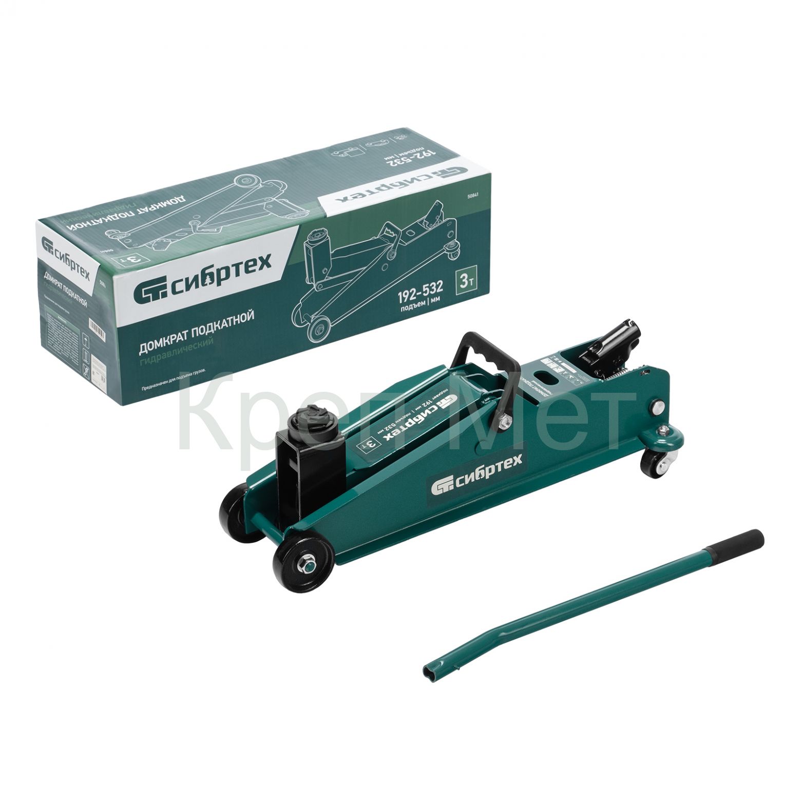 Гидравлический подкатной домкрат Сибртех 50841 с высотой подхвата 192 мм, предназначен для подъема грузов массой до 3 т на высоту до 532 мм, подходит для автомобилей со стандартным клиренсом и SUV. Компактный домкрат подходит для самостоятельного использования автовладельцами.