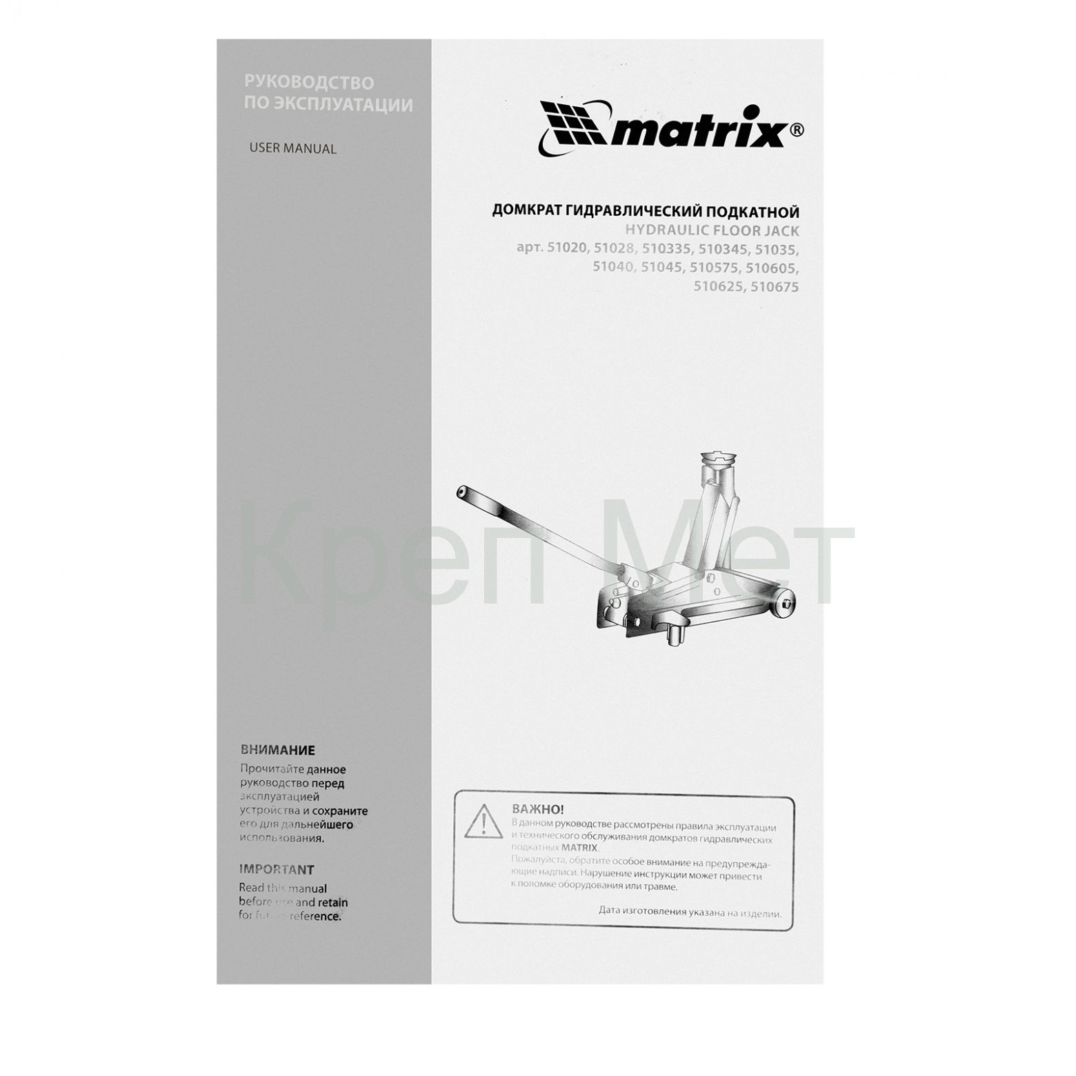 Домкрат гидравлический подкатной, 3 т, высота подъема 140-520 мм Matrix