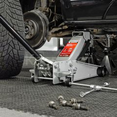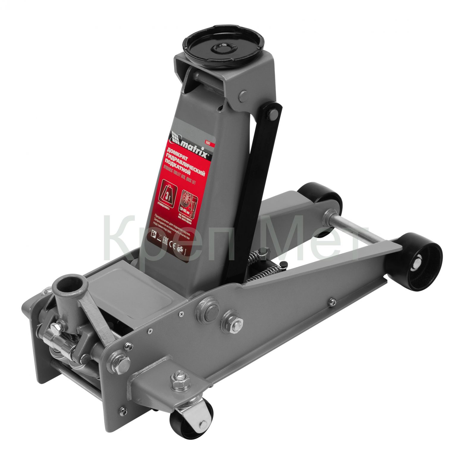 Подкатной гидравлический домкрат Matrix Quick Lift 51047 с системой быстрого подъема на высоту 130-465 мм — профессиональное гаражное оборудование, способное поднимать груз массой до 3 т. Высота подхвата 130 мм позволяет использовать домкрат для автомашин со стандартным клиренсом. Домкрат будет полезен в шиномонтажных центрах и автосервисах.