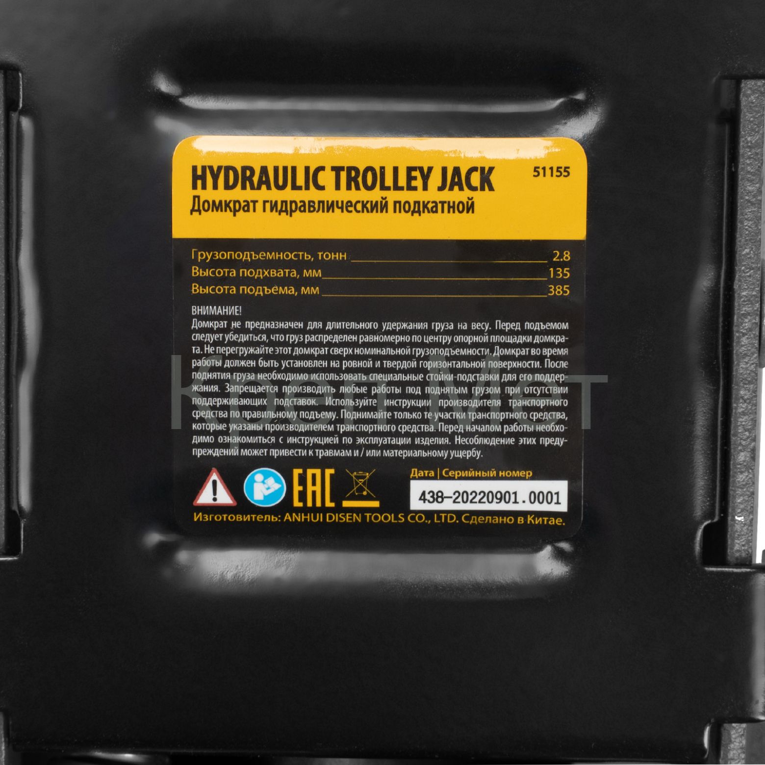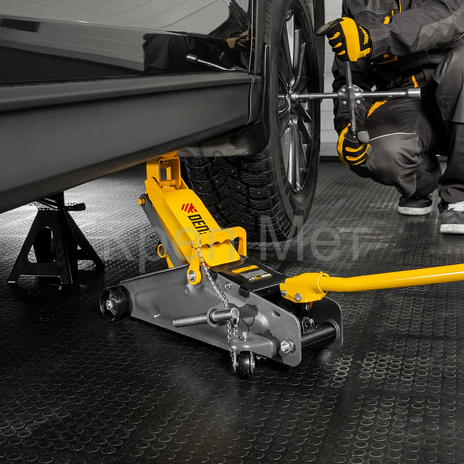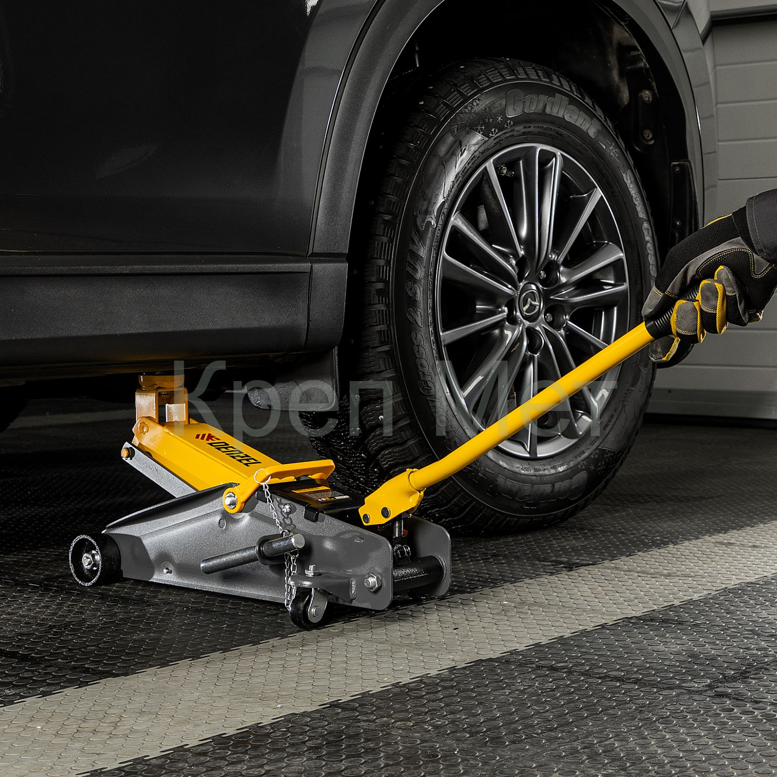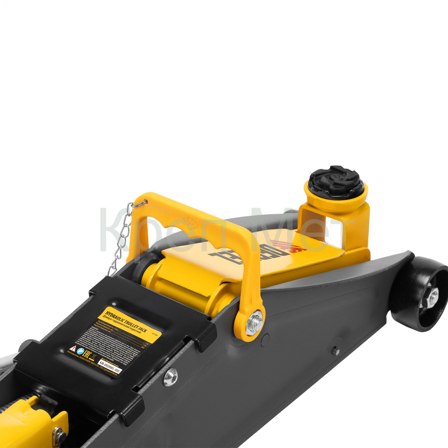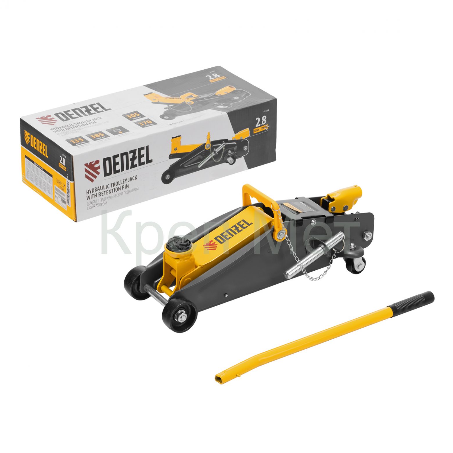 - Домкрат гидравлический подкатной с фиксатором, 2,8 т, 135-385 мм Denzel